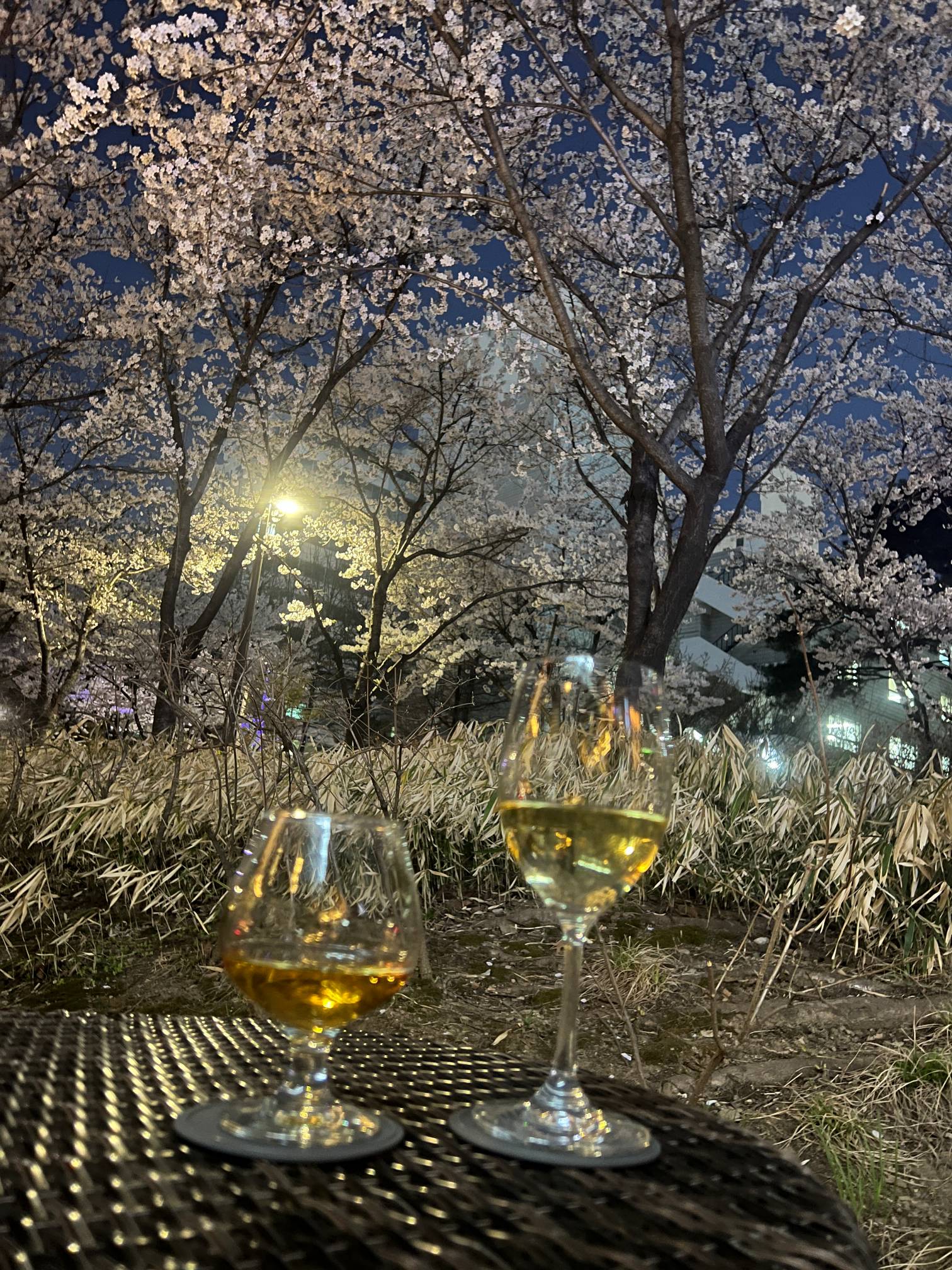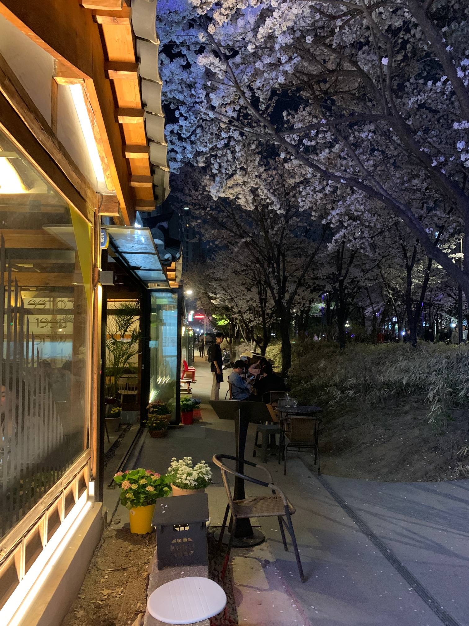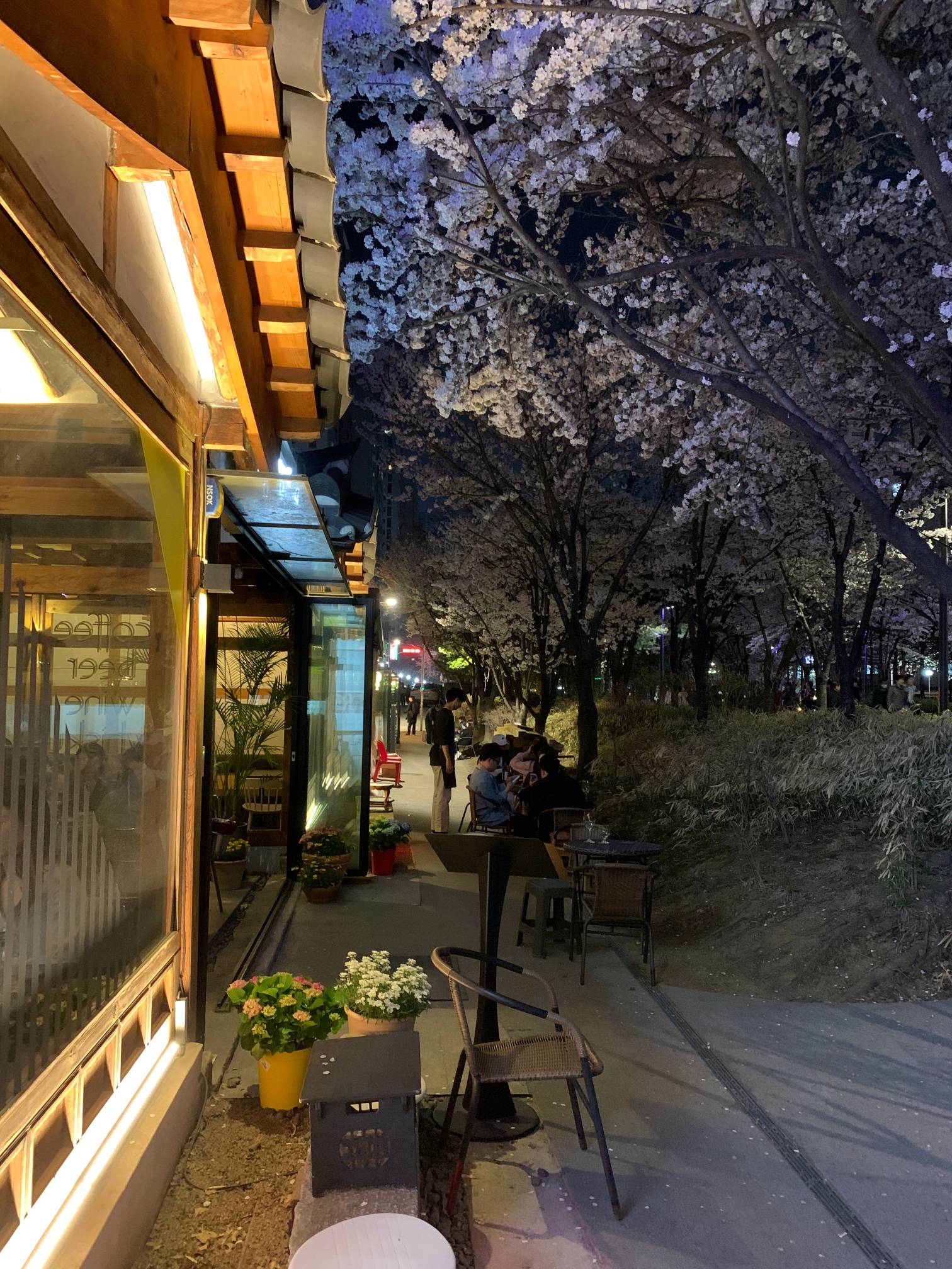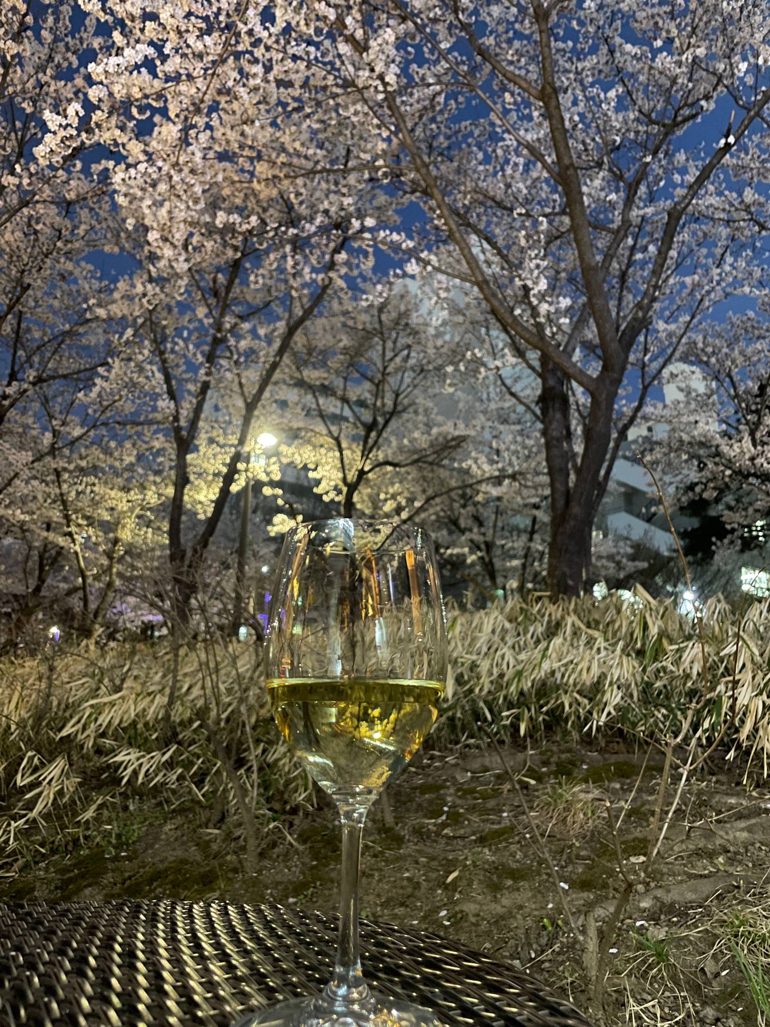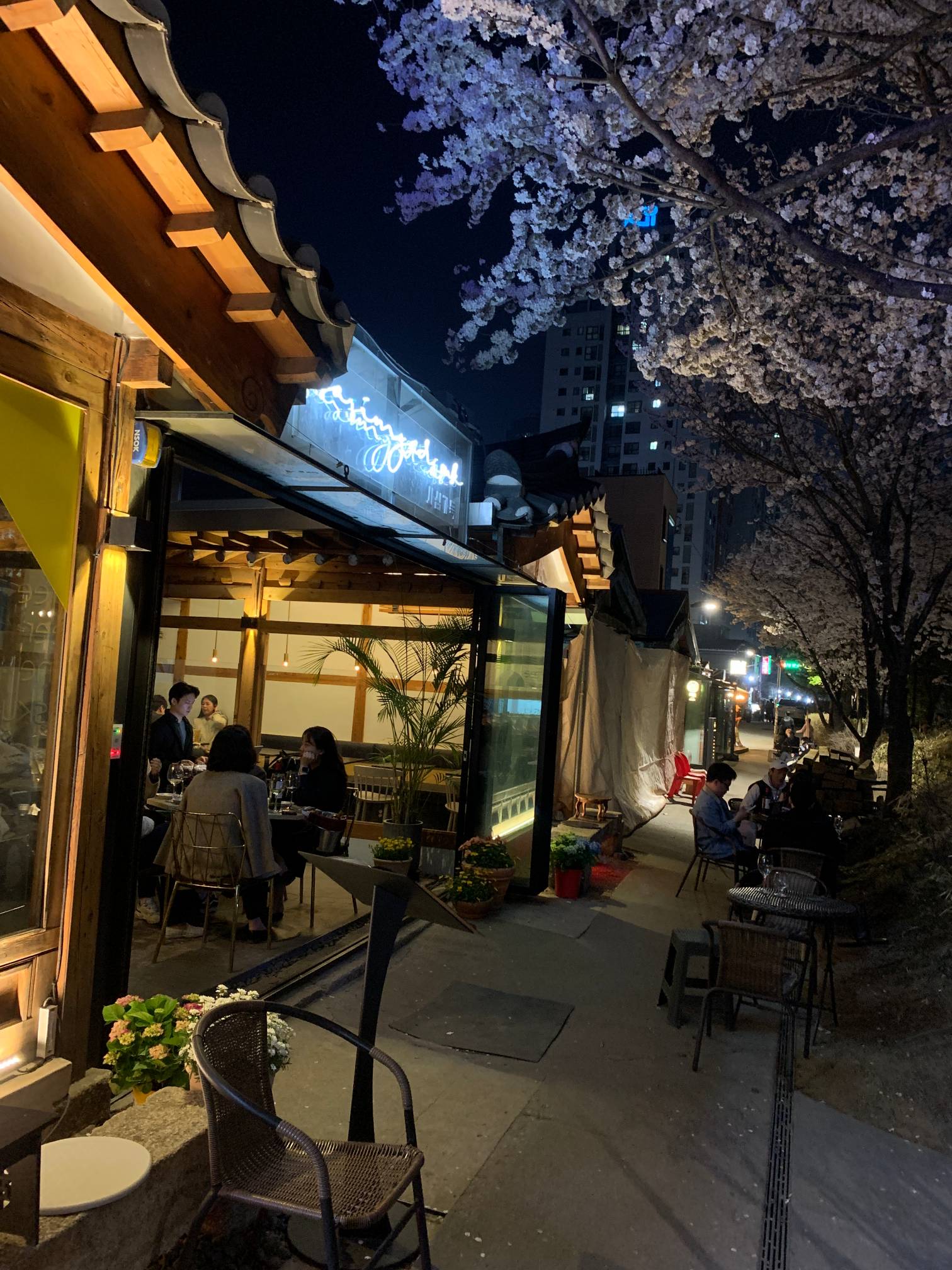 이렇게 바깥에 앉으면 벚꽃나무 바로 옆에서 와인을 한 잔 마실 수 있다 운치가 굉장히 좋다.