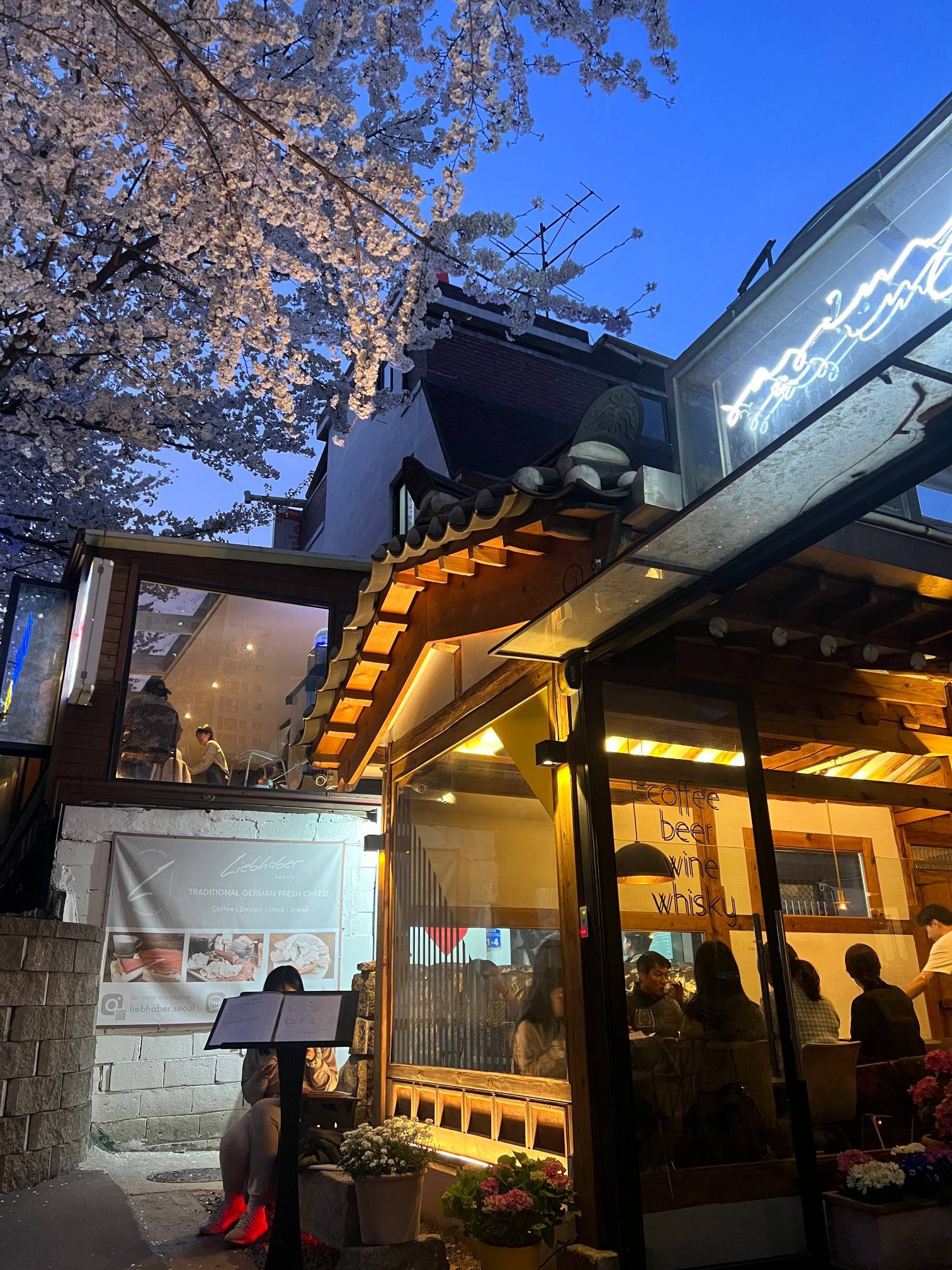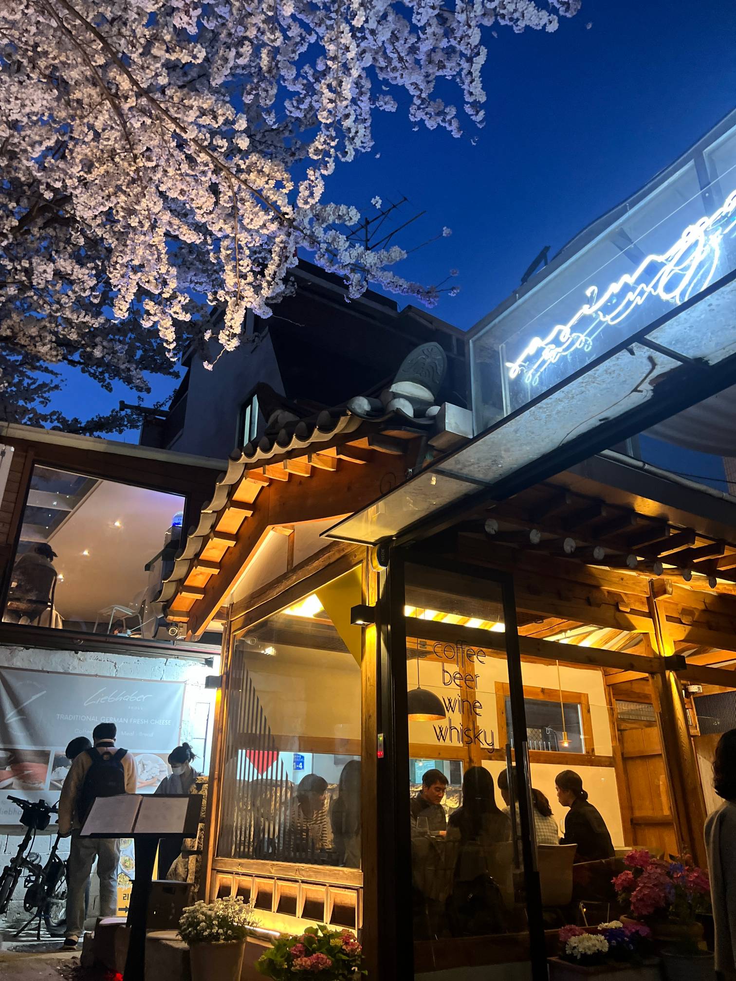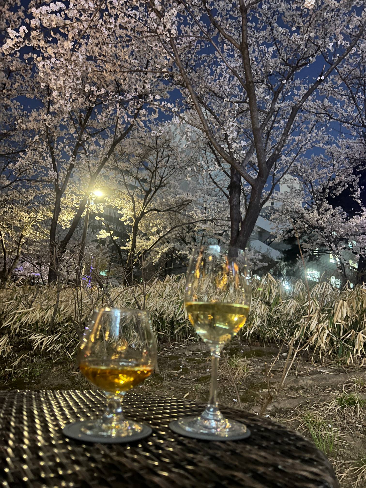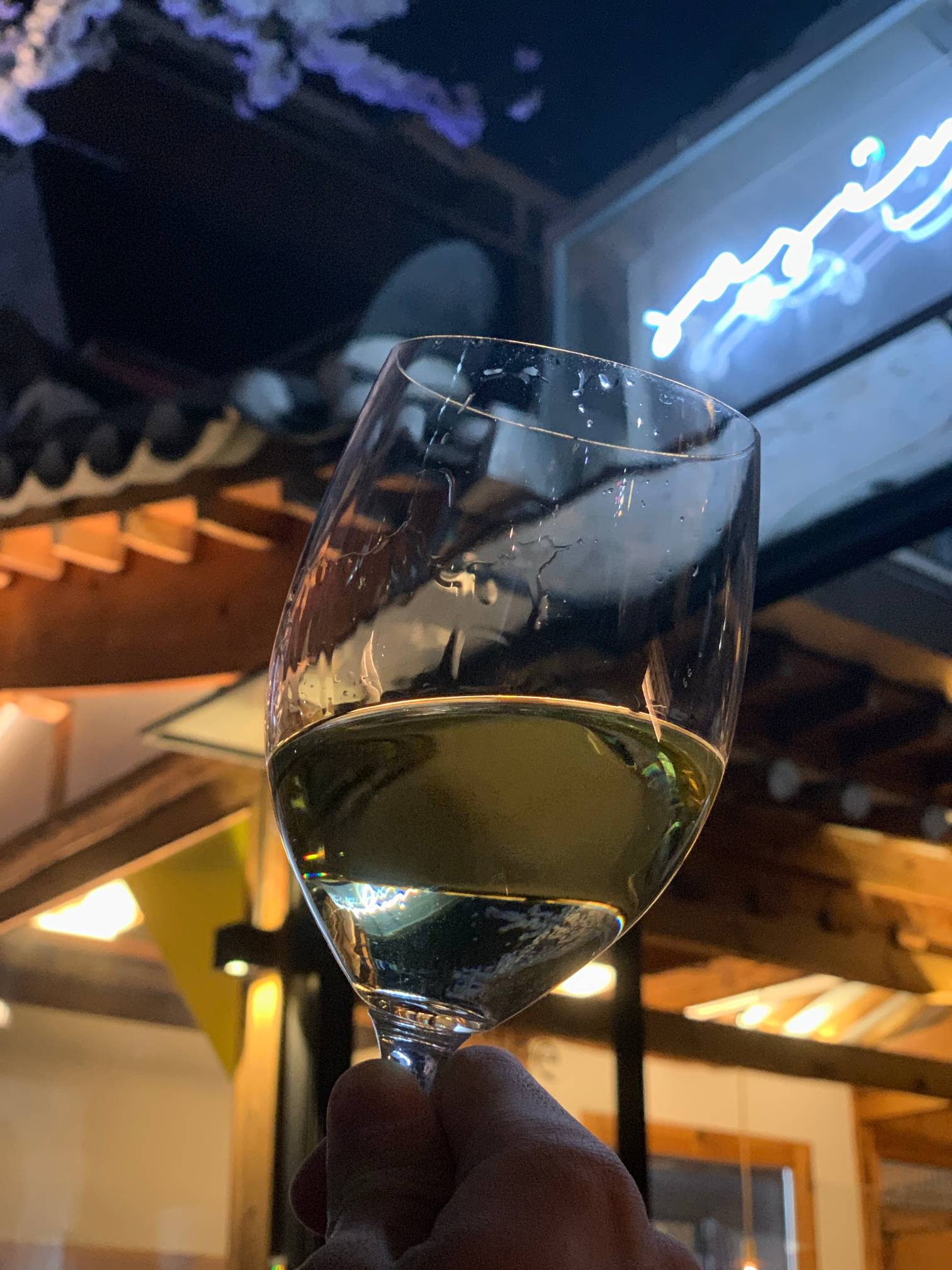 이렇게 바깥에 앉으면 벚꽃나무 바로 옆에서 와인을 한 잔 마실 수 있다 운치가 굉장히 좋다.
