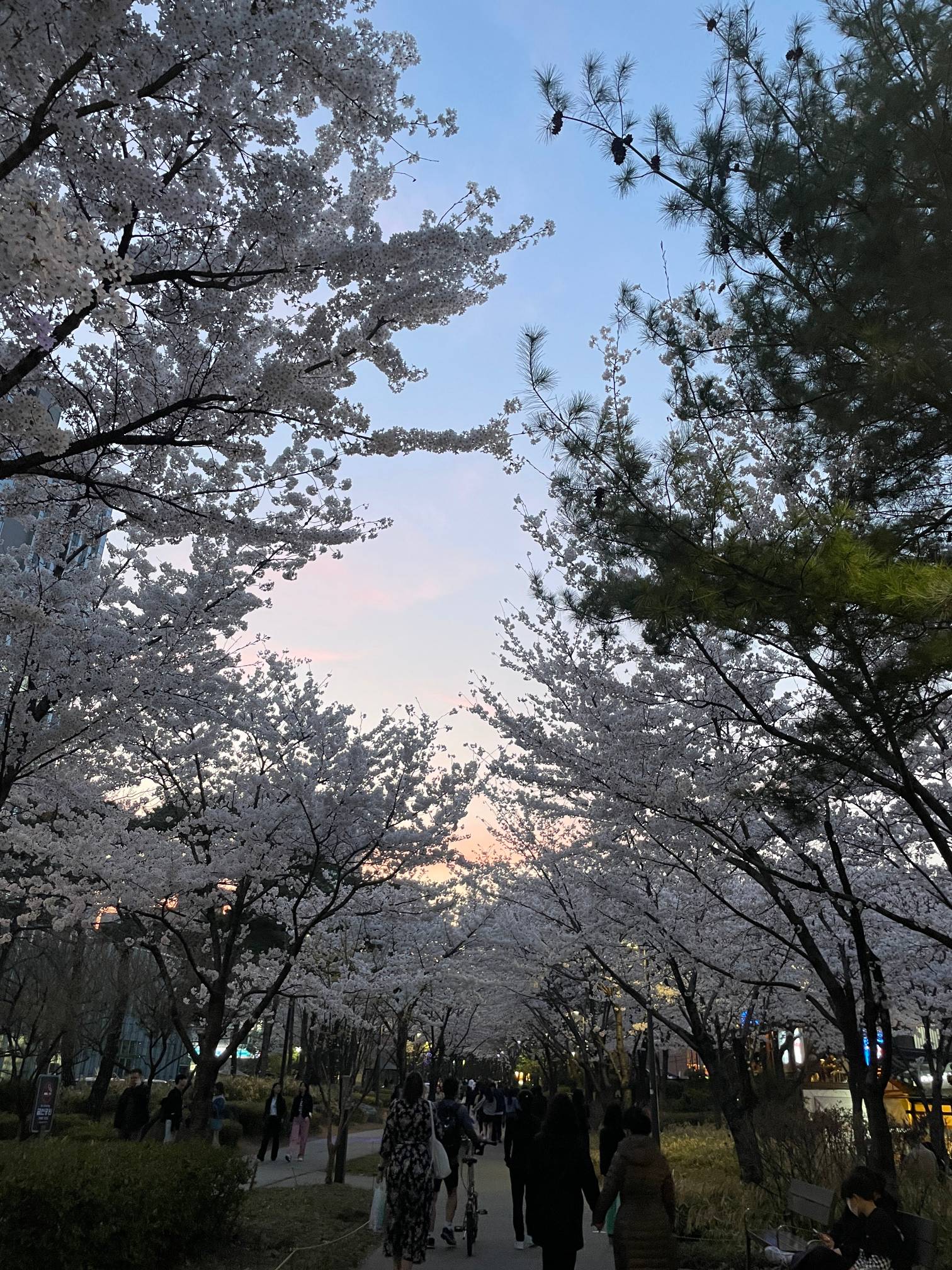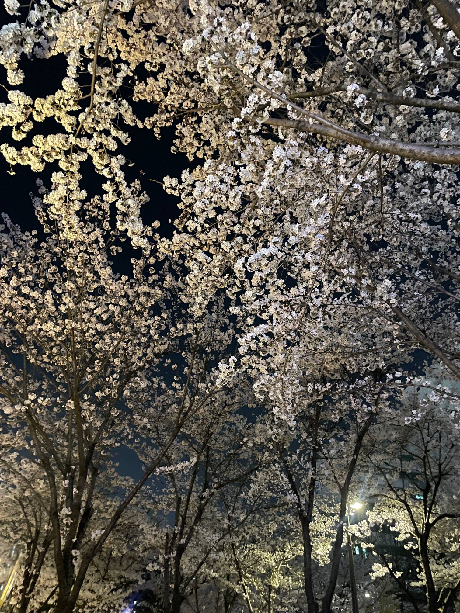 그리고 벚꽃나무가 바로 옆에, 위에 있어서 벚꽃에 둘러싸인 느낌이 든다.