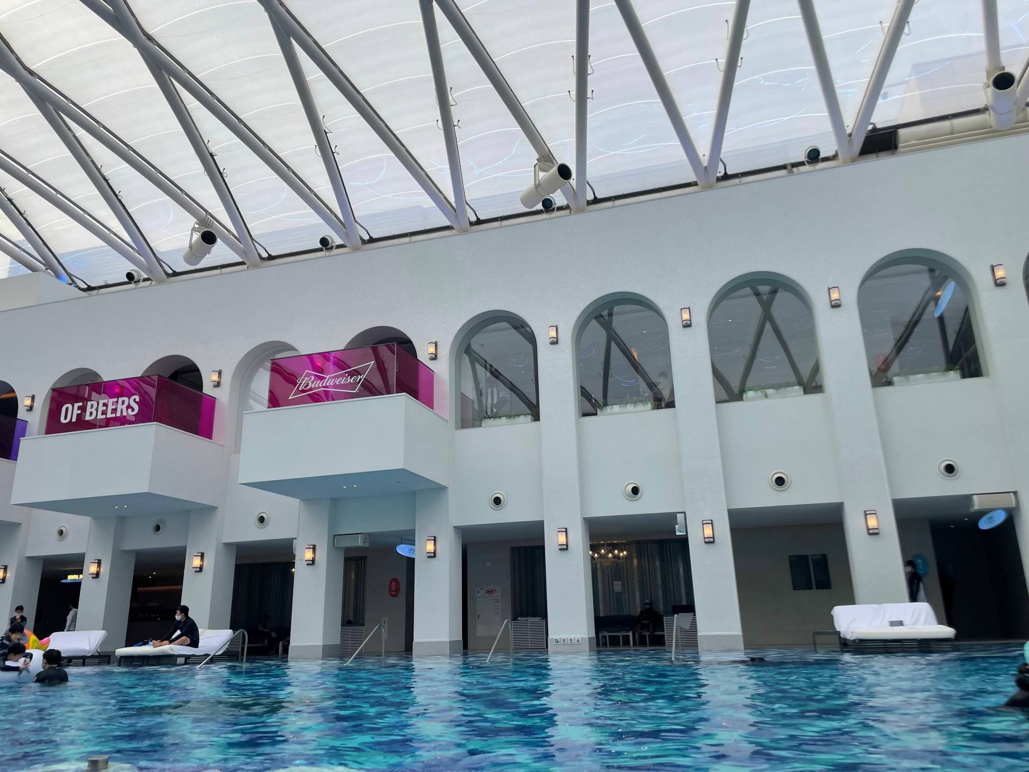 안으로 들어오면 이렇게 탁 트인 메인풀이 보인다.