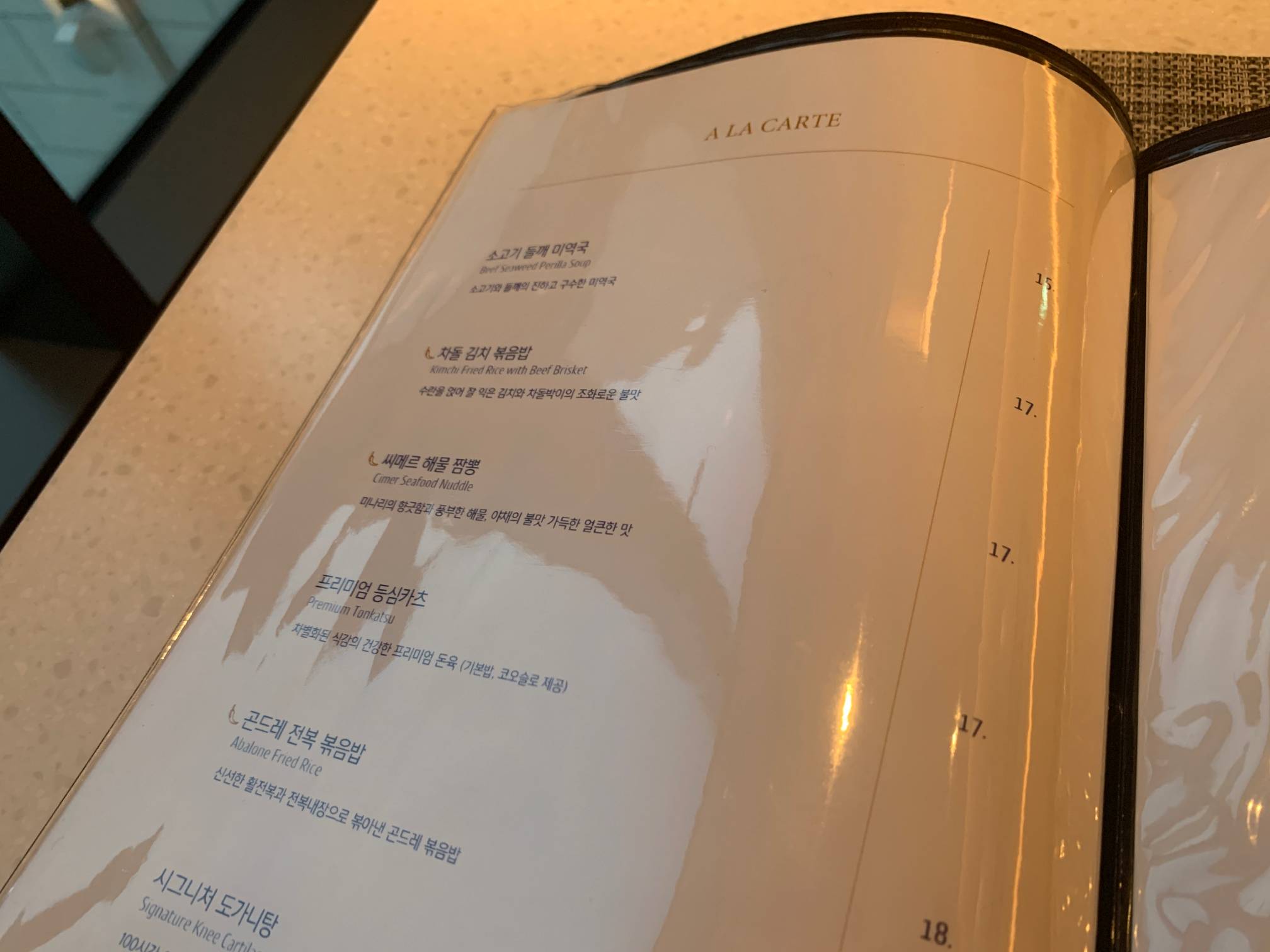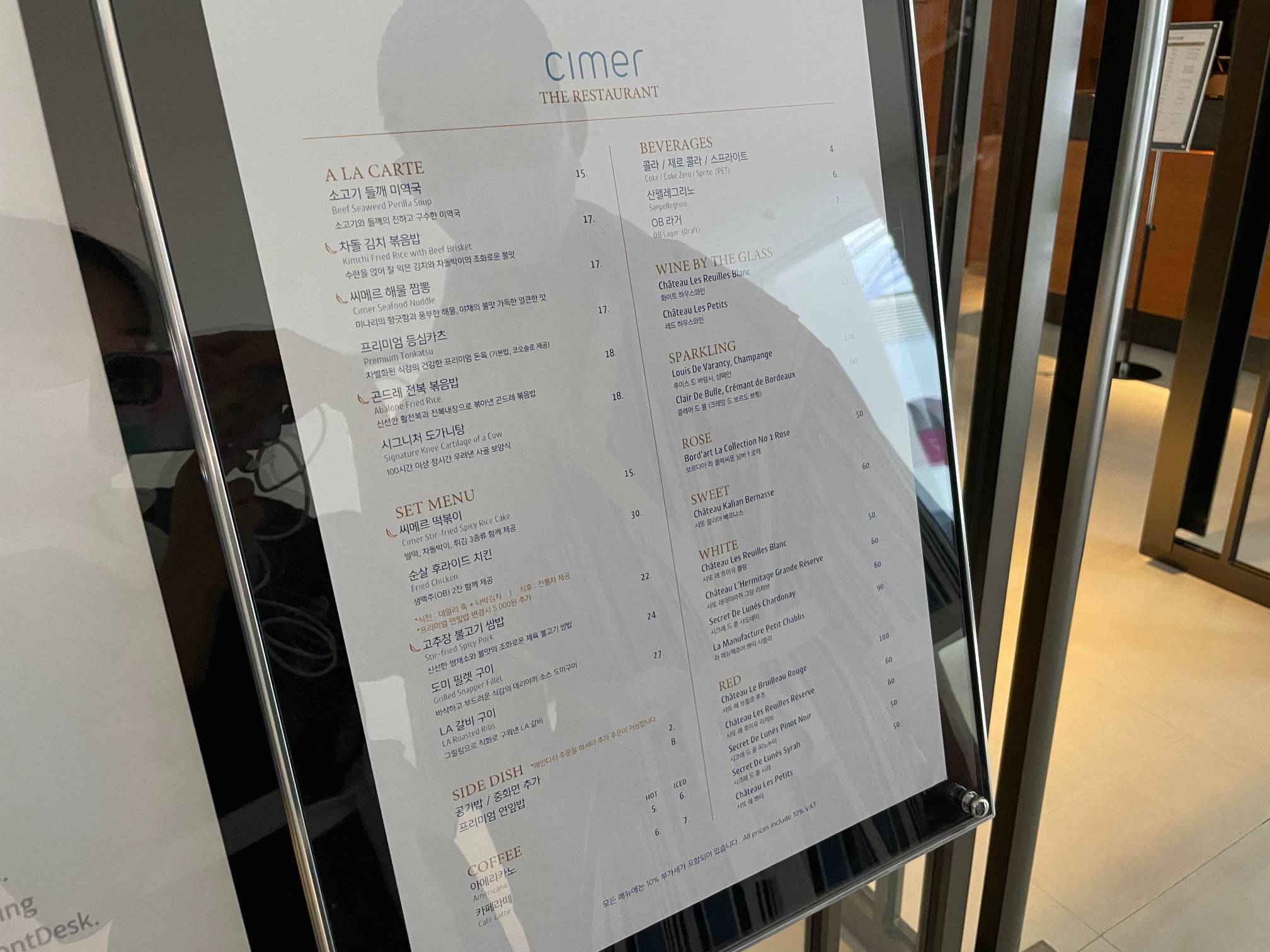 안에 있는 식당 메뉴판이다.