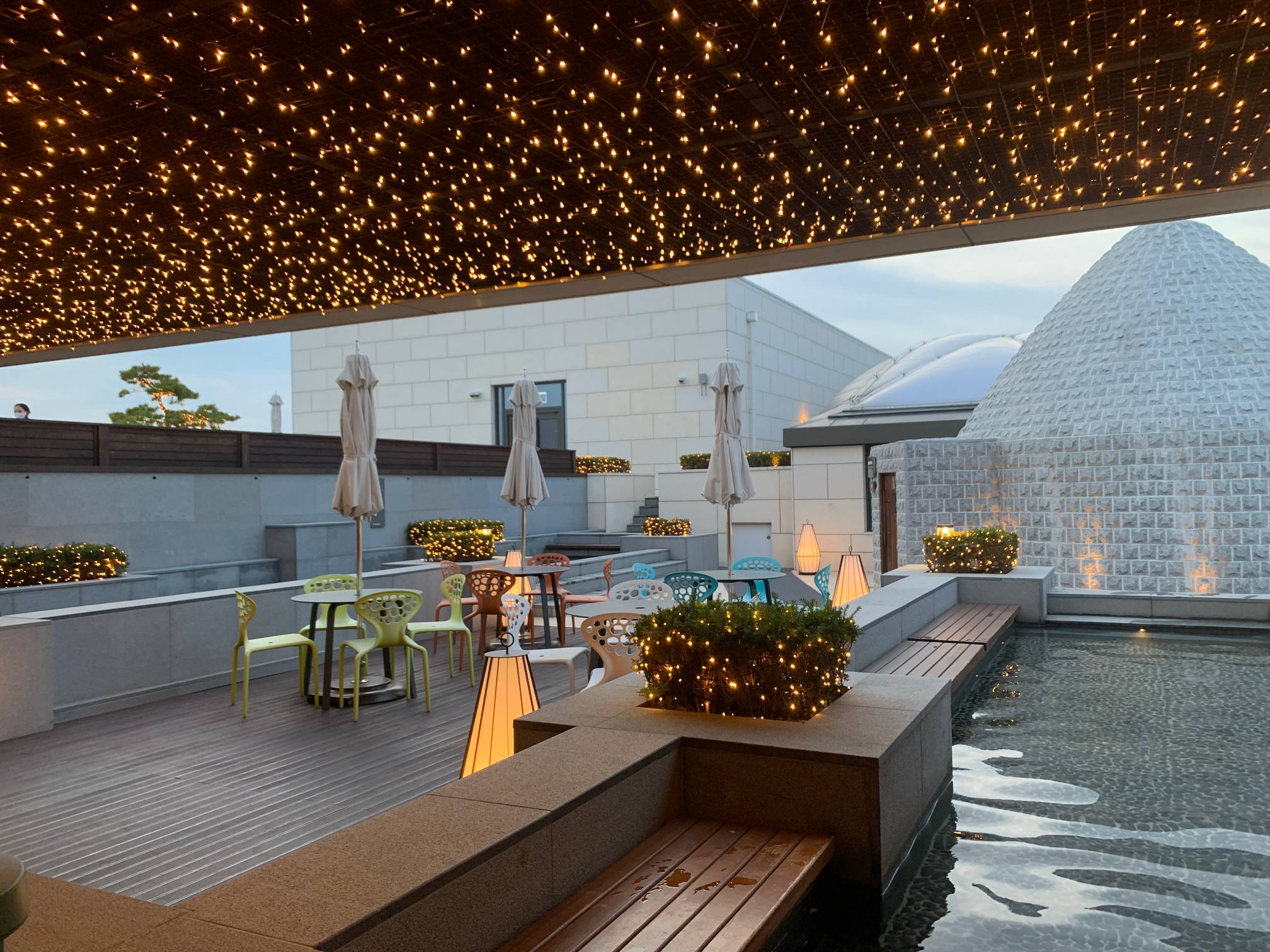 요새 호텔에 있는 스파에는 이런 미디어풀을 만드는 게 유행인 것 같은데, 약간 심신이 편안해지는 느낌이 들기도 하고 사진 찍기에도 좋다.