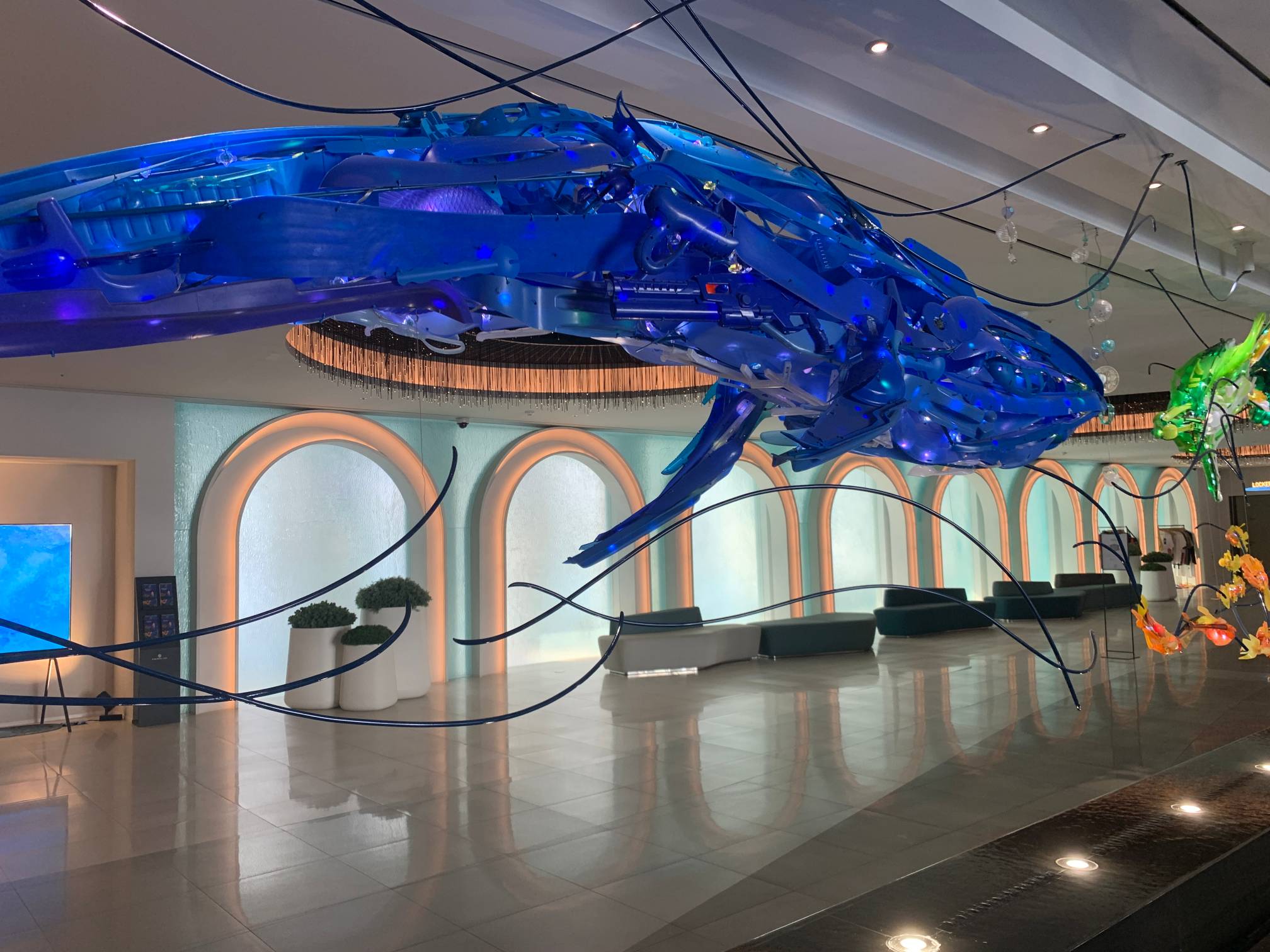 고래 모형이 천장에 있는데 뭔가 고급스럽고 멋있다.