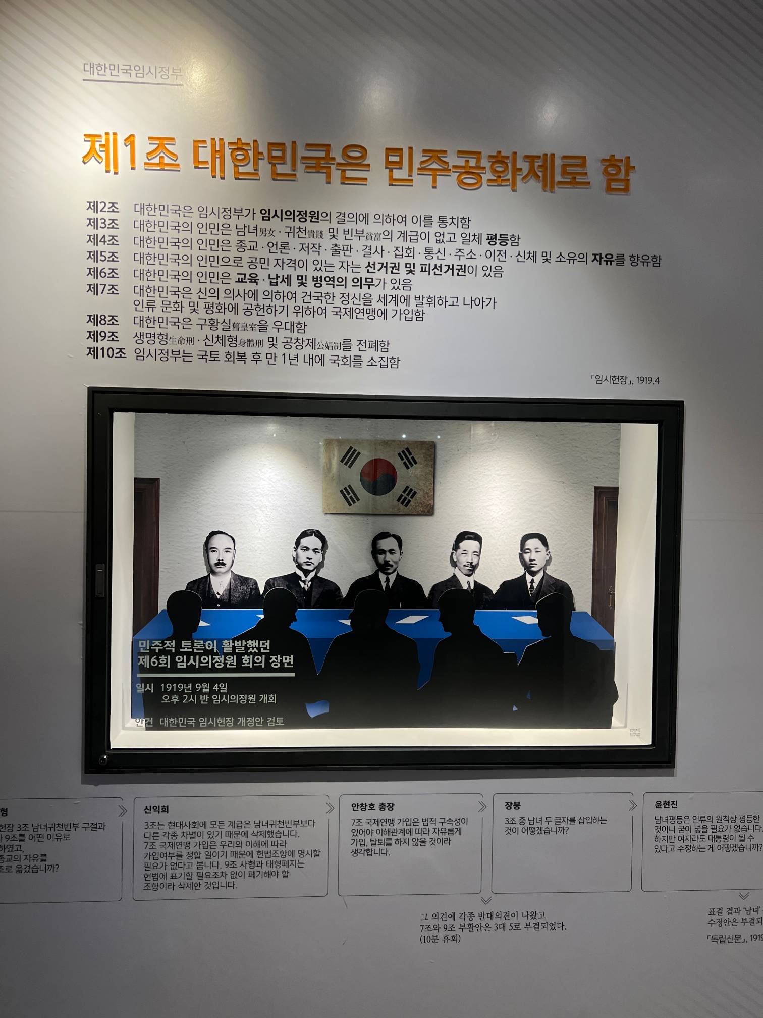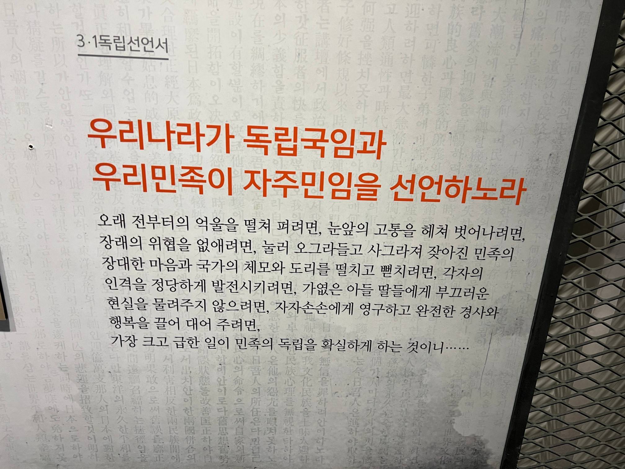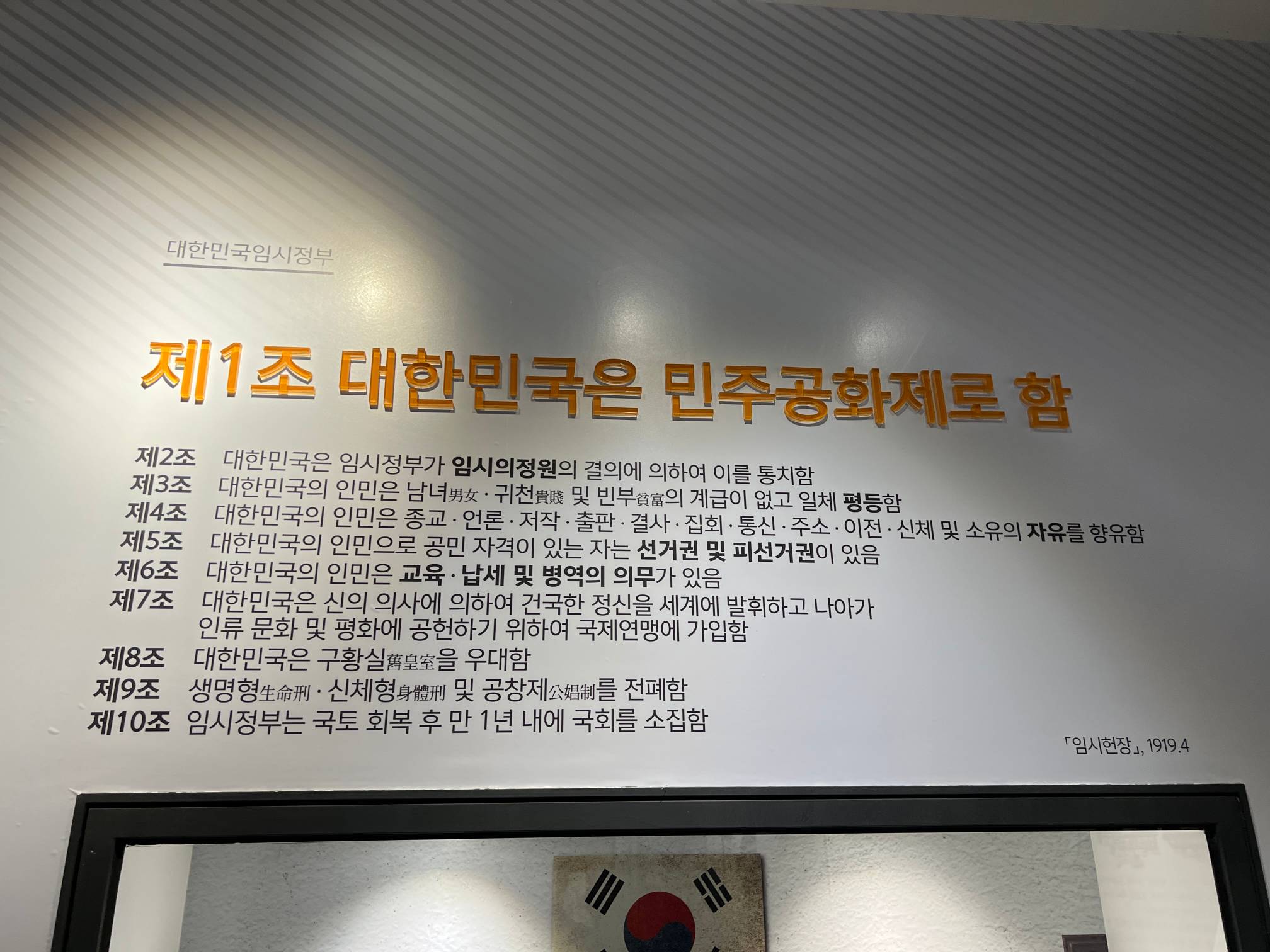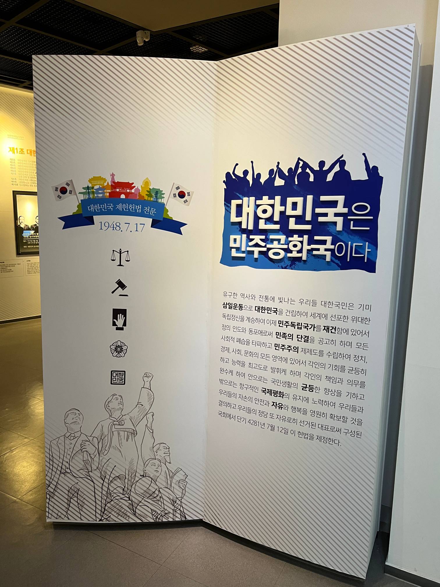 우리나라 헌법 전문이 적혀 있다.