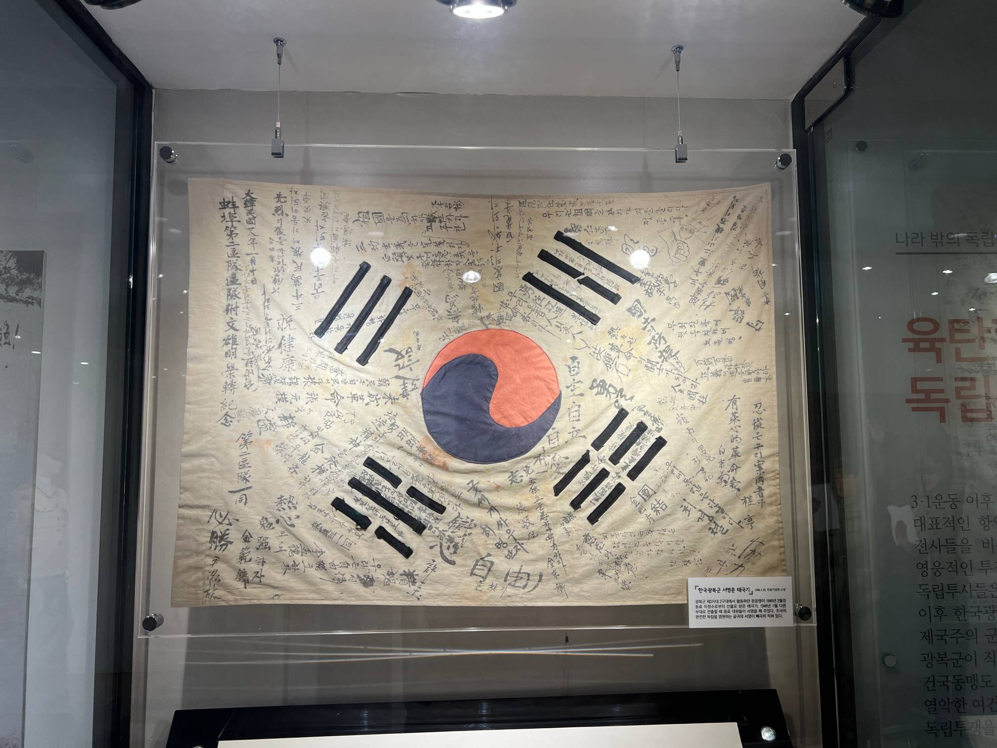 독립운동가들이 서명한 태극기.