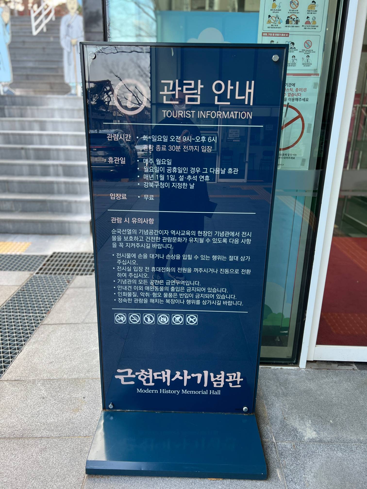 오전 9시부터 오후 6시까지 오픈하고, 매주 월요일은 휴관일이다.