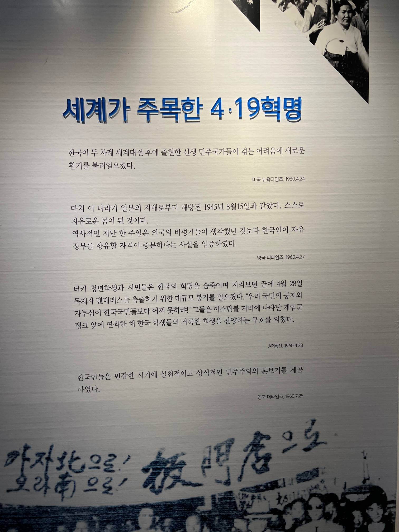 그리고 이 기념관이 있는 거리인 4.19 혁명에 대해 설명하고 있다.