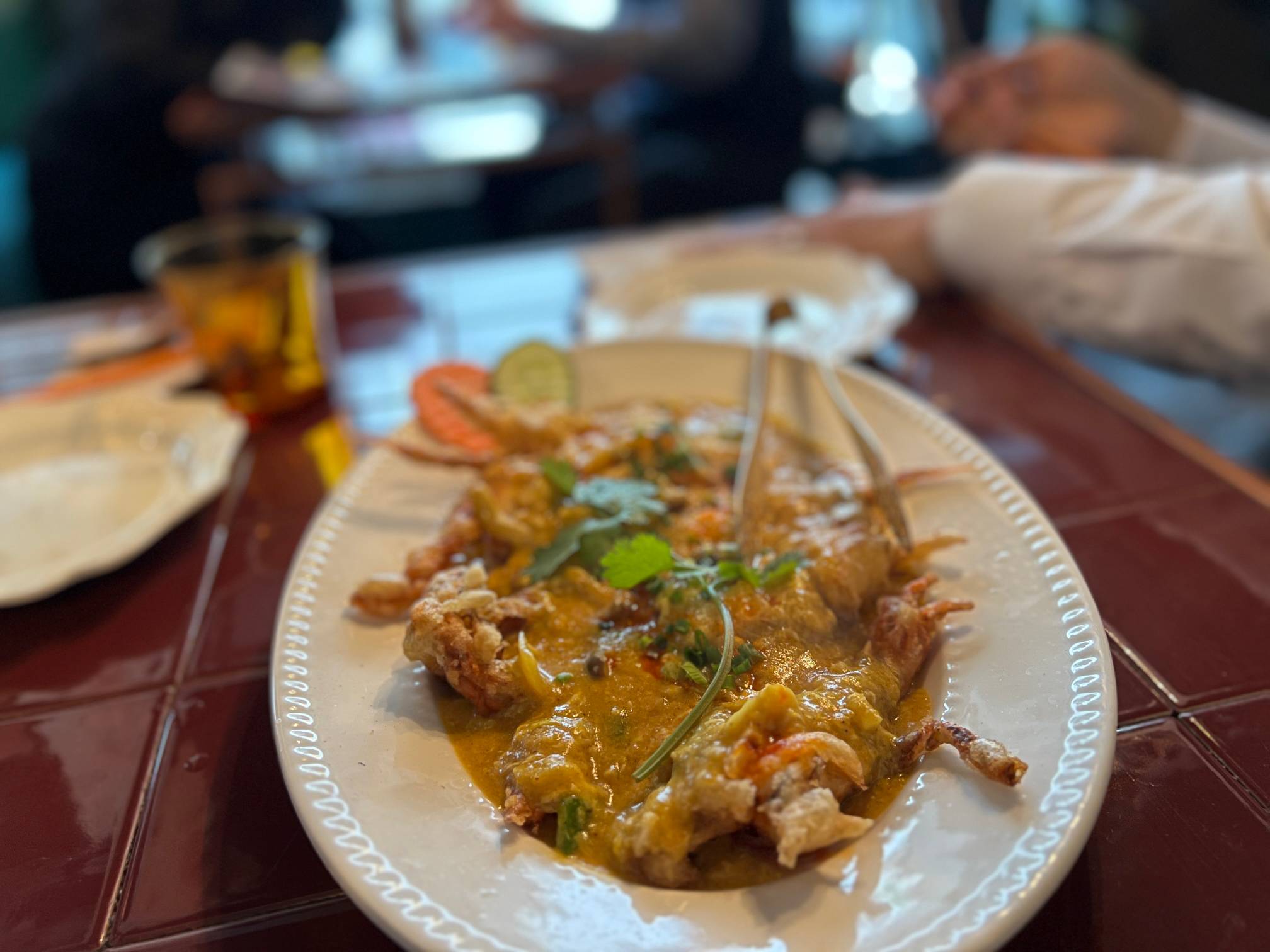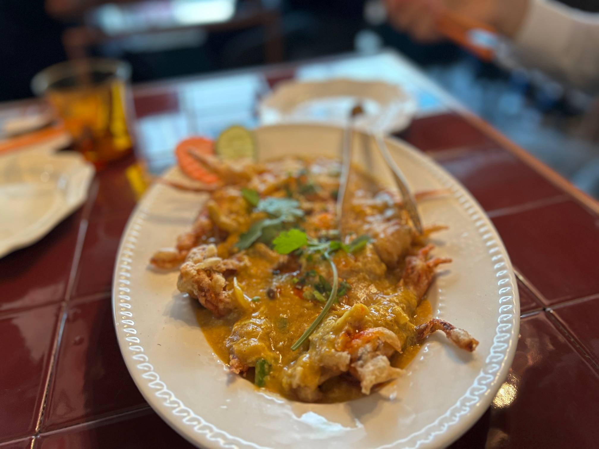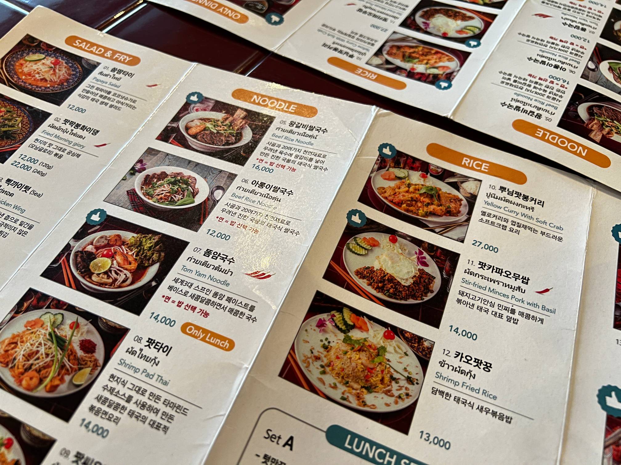 쌀국수 16,000원, 뿌님팟퐁커리가 27,000원 정도로 저렴한 편은 아니다.