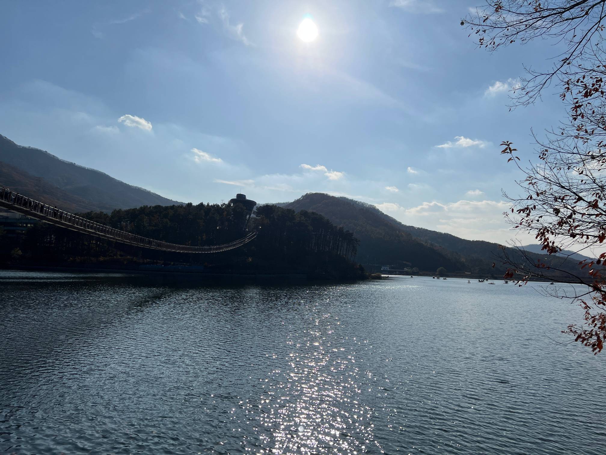 출렁 다리 가는 길에 보이는 마장호수뷰.