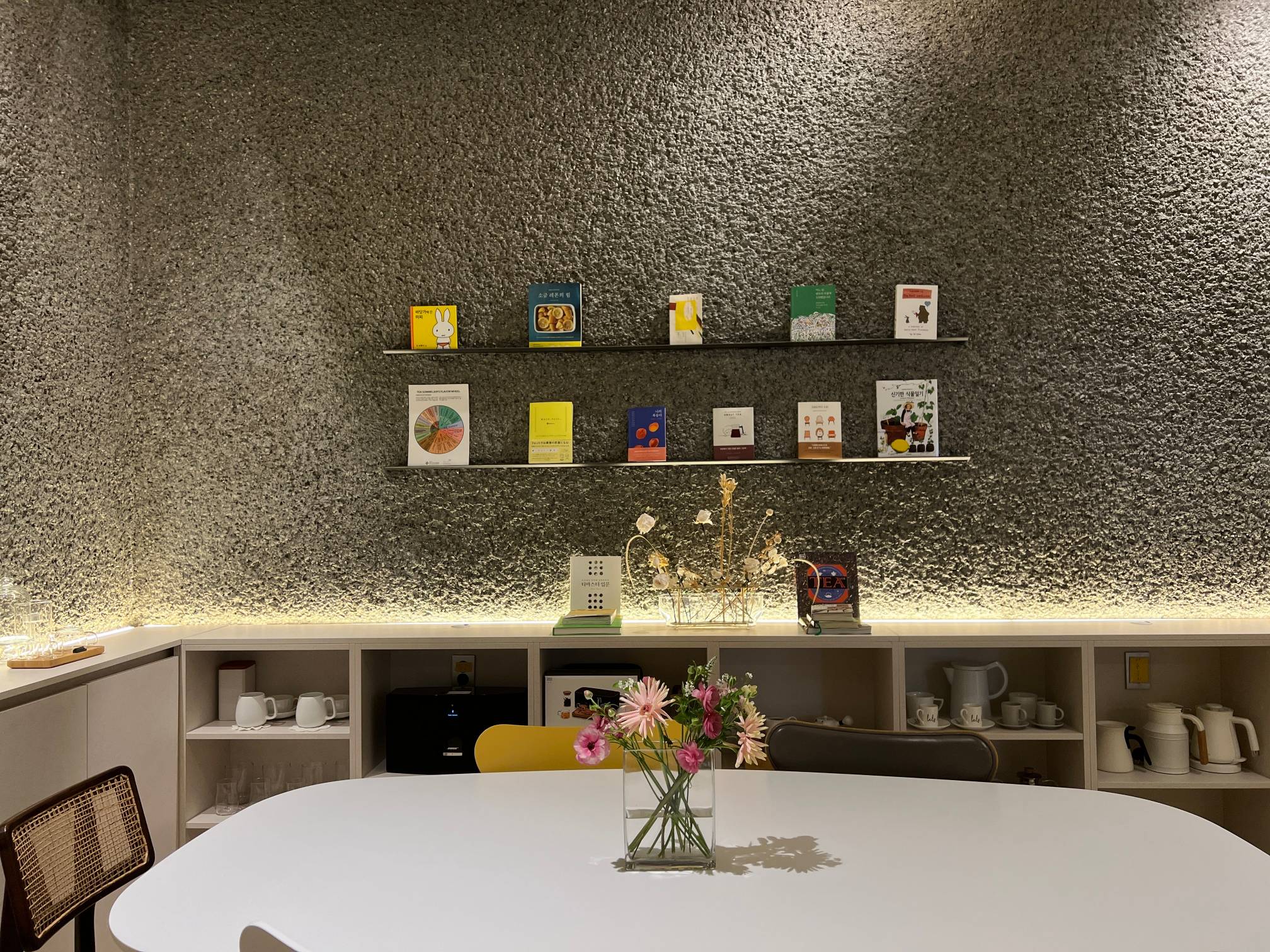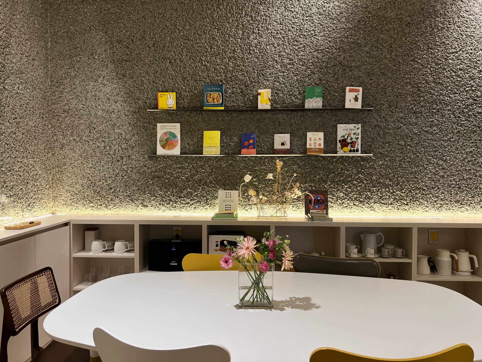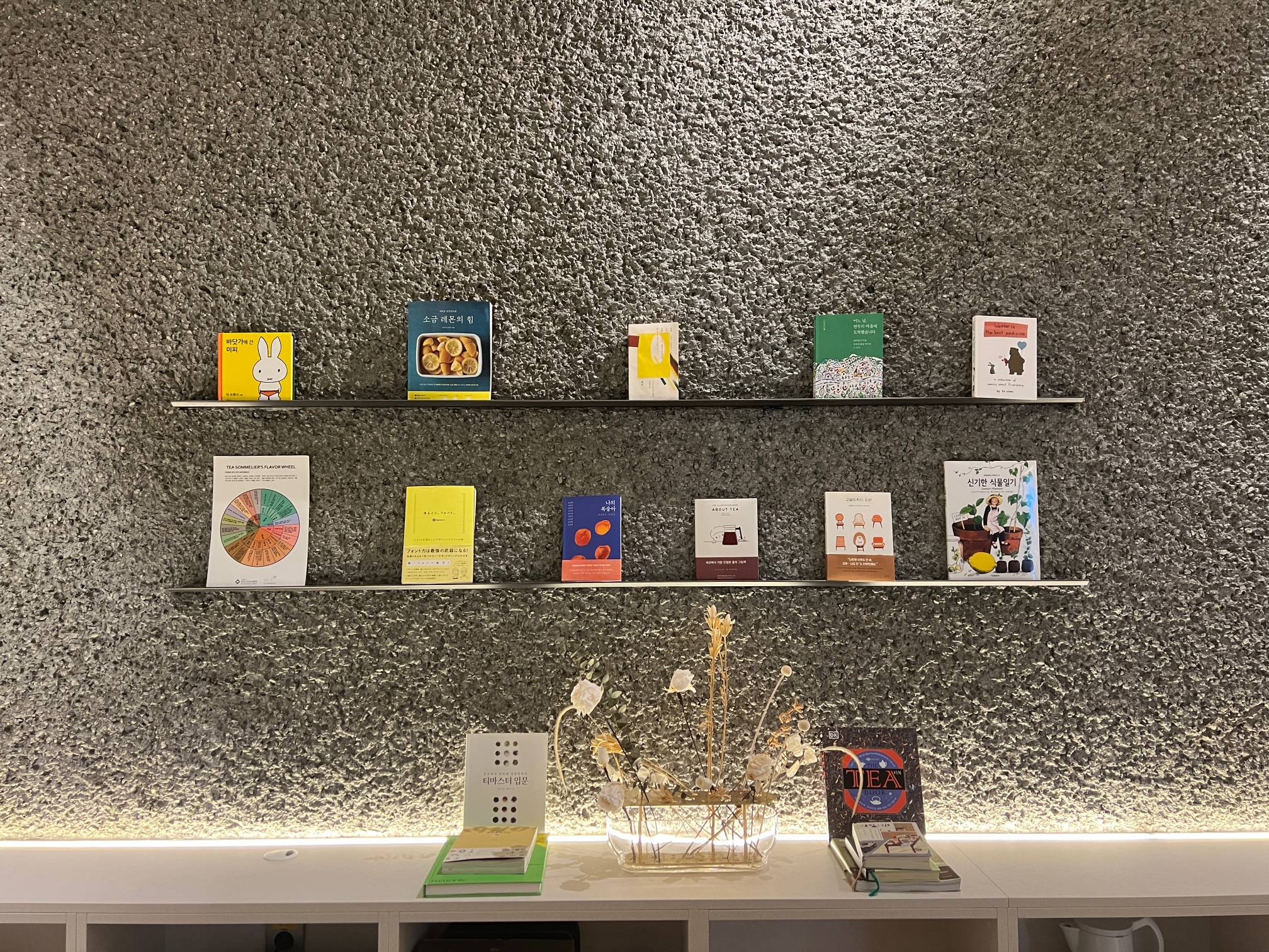 한쪽 벽면에는 이렇게 책들이 전시되어 있다.