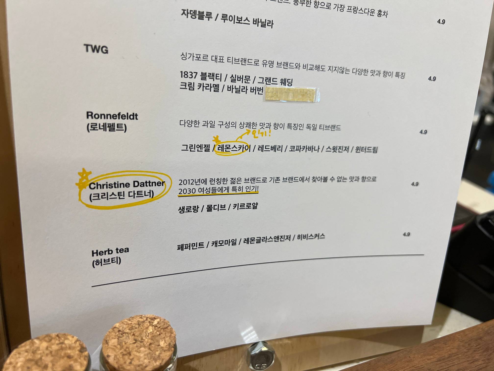 어차피 같은 가격 주고 마실 거 5천원짜리 아메리카노보다는 이런 차가 훨씬 나은 듯 하다.