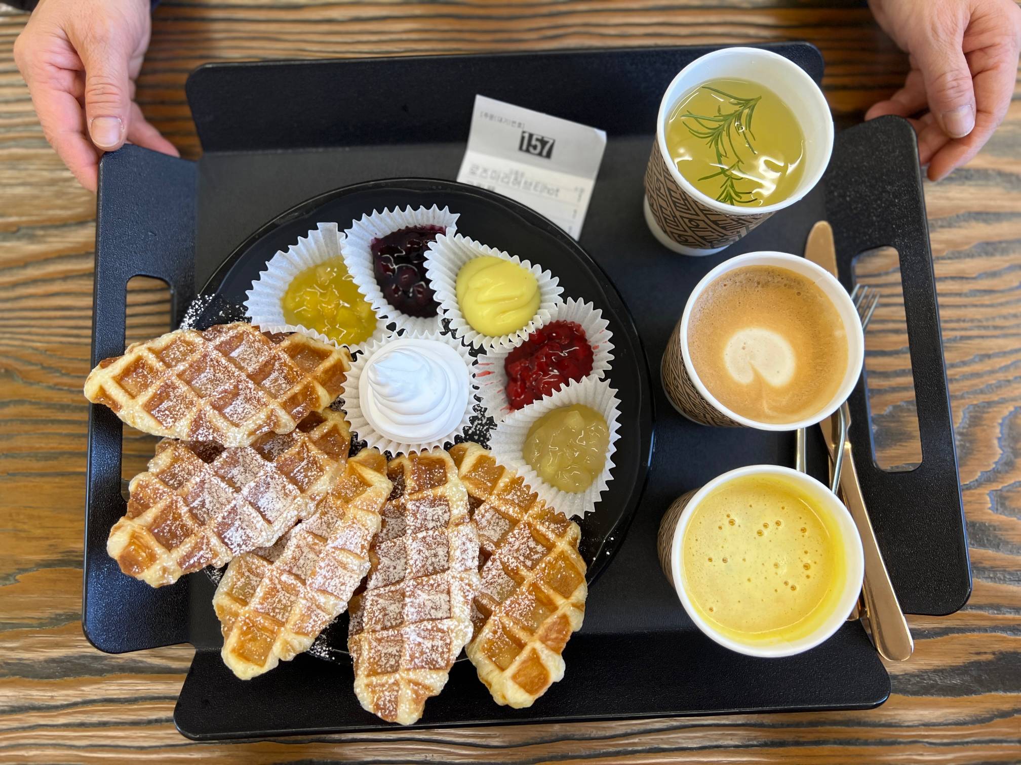 음료 세잔에 크림플 하나를 시켰는데 가격이 ㄷㄷ