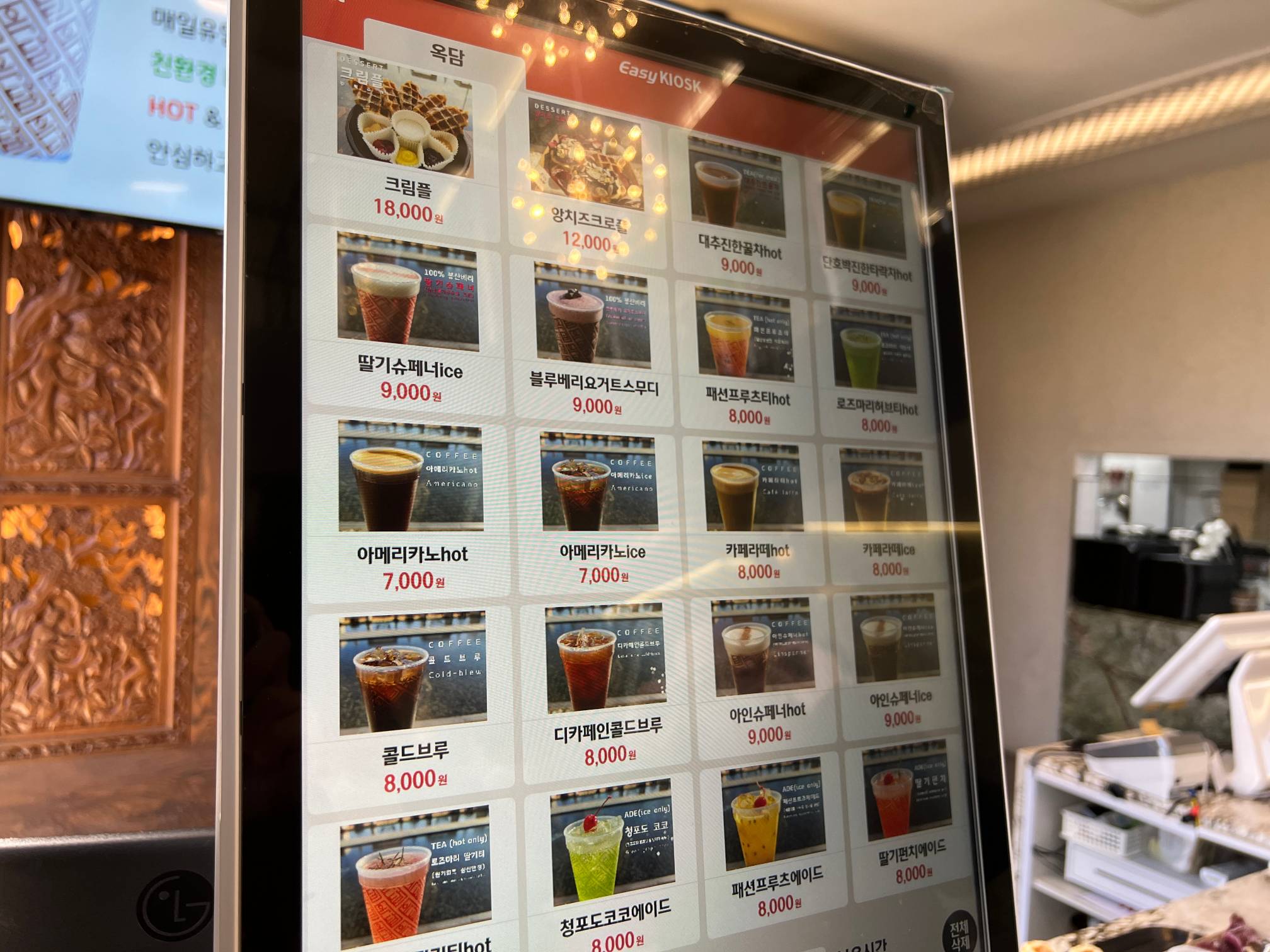 크림플은 18,000원 ... 음료는 약 8-9천원 정도이다.