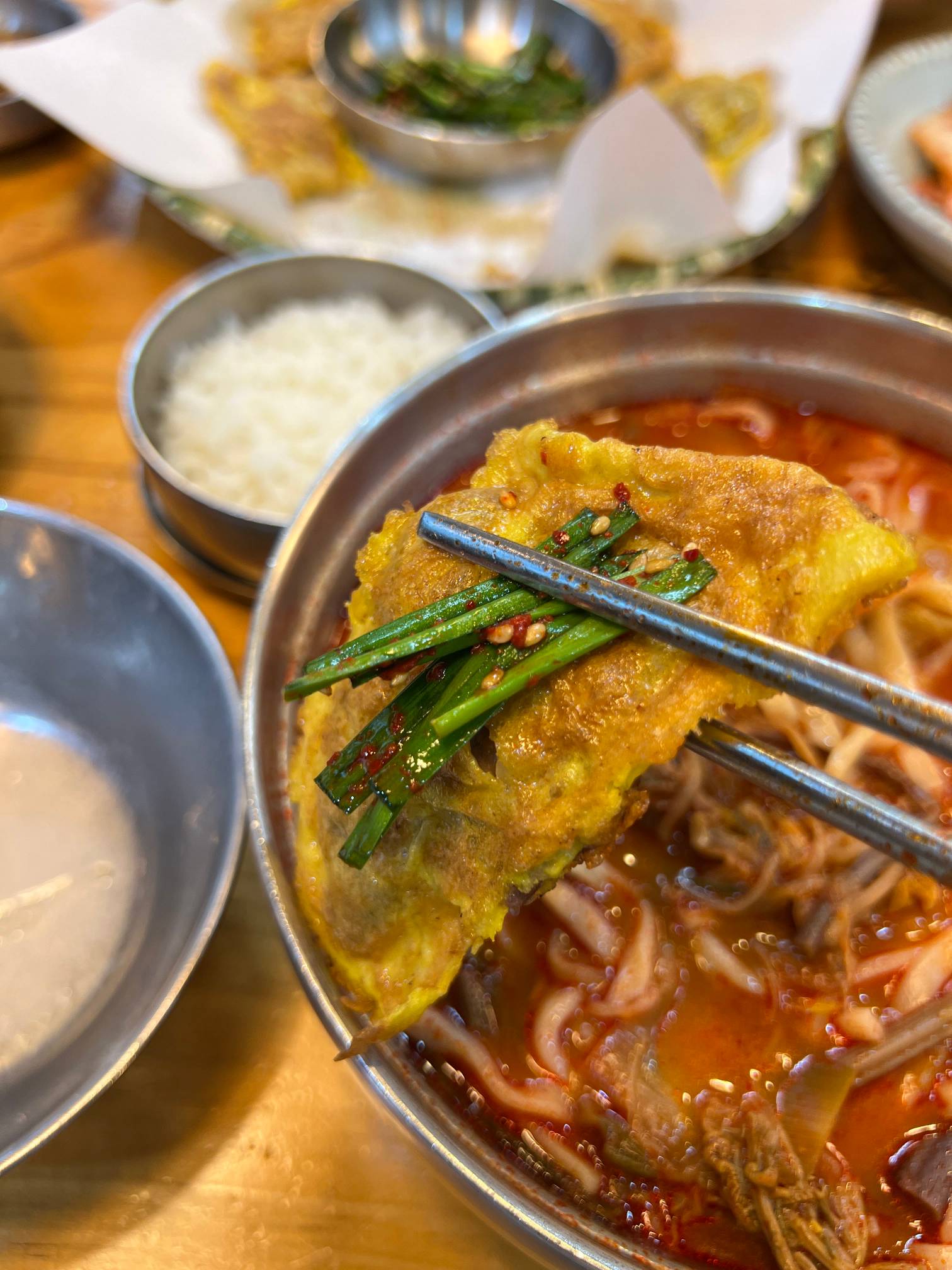 보통 해물 칼국수나 먹지 육개장 칼국수는 처음 먹어보는 것 같은데 상당히 잘 어울리고 맛있었다.