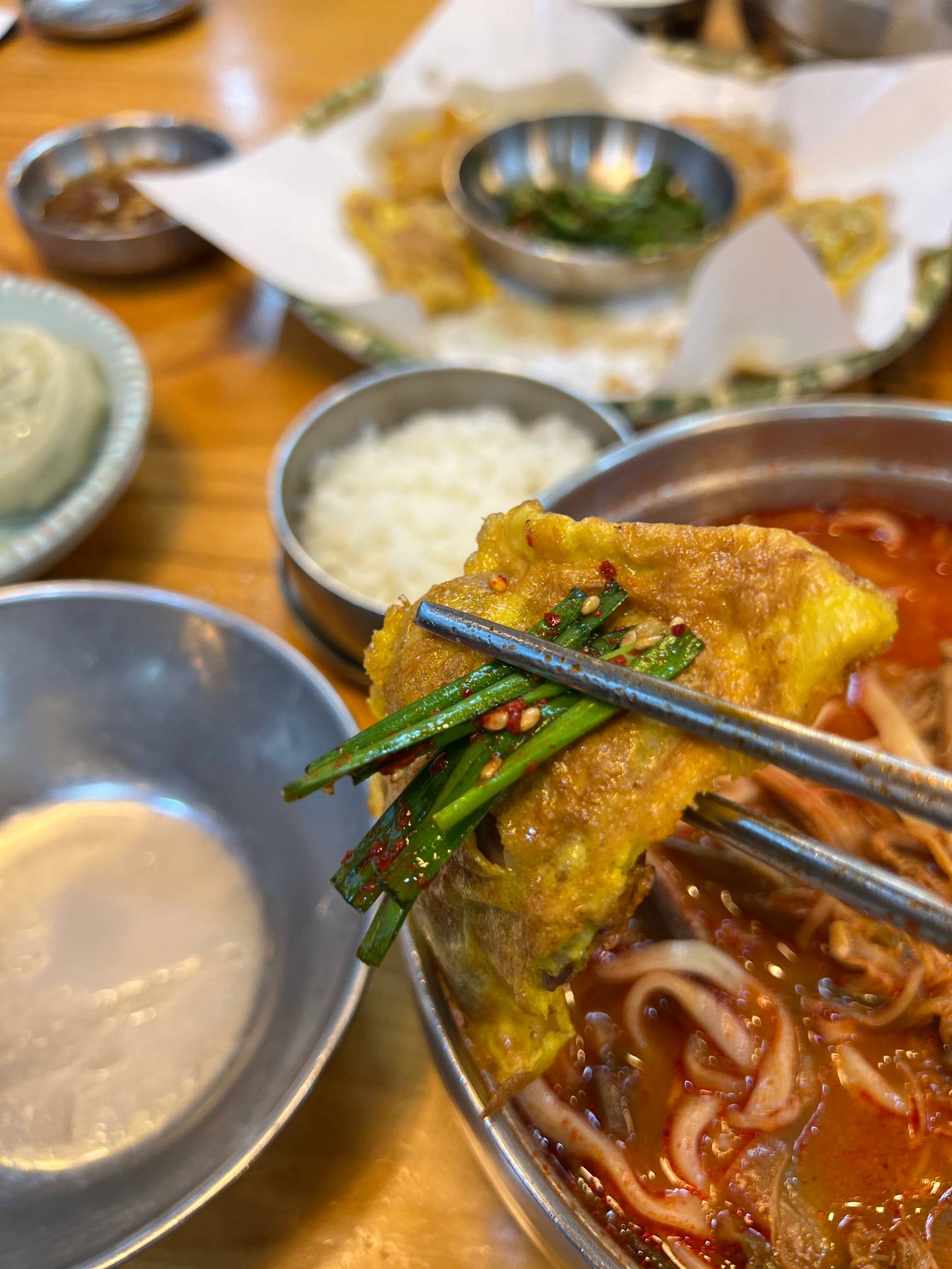 보통 해물 칼국수나 먹지 육개장 칼국수는 처음 먹어보는 것 같은데 상당히 잘 어울리고 맛있었다.