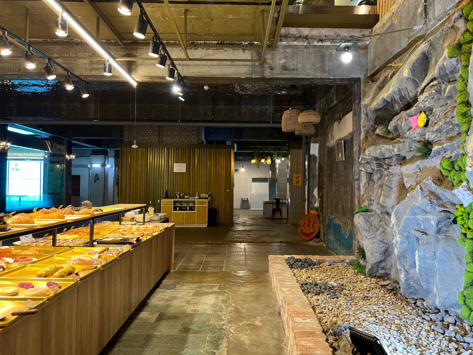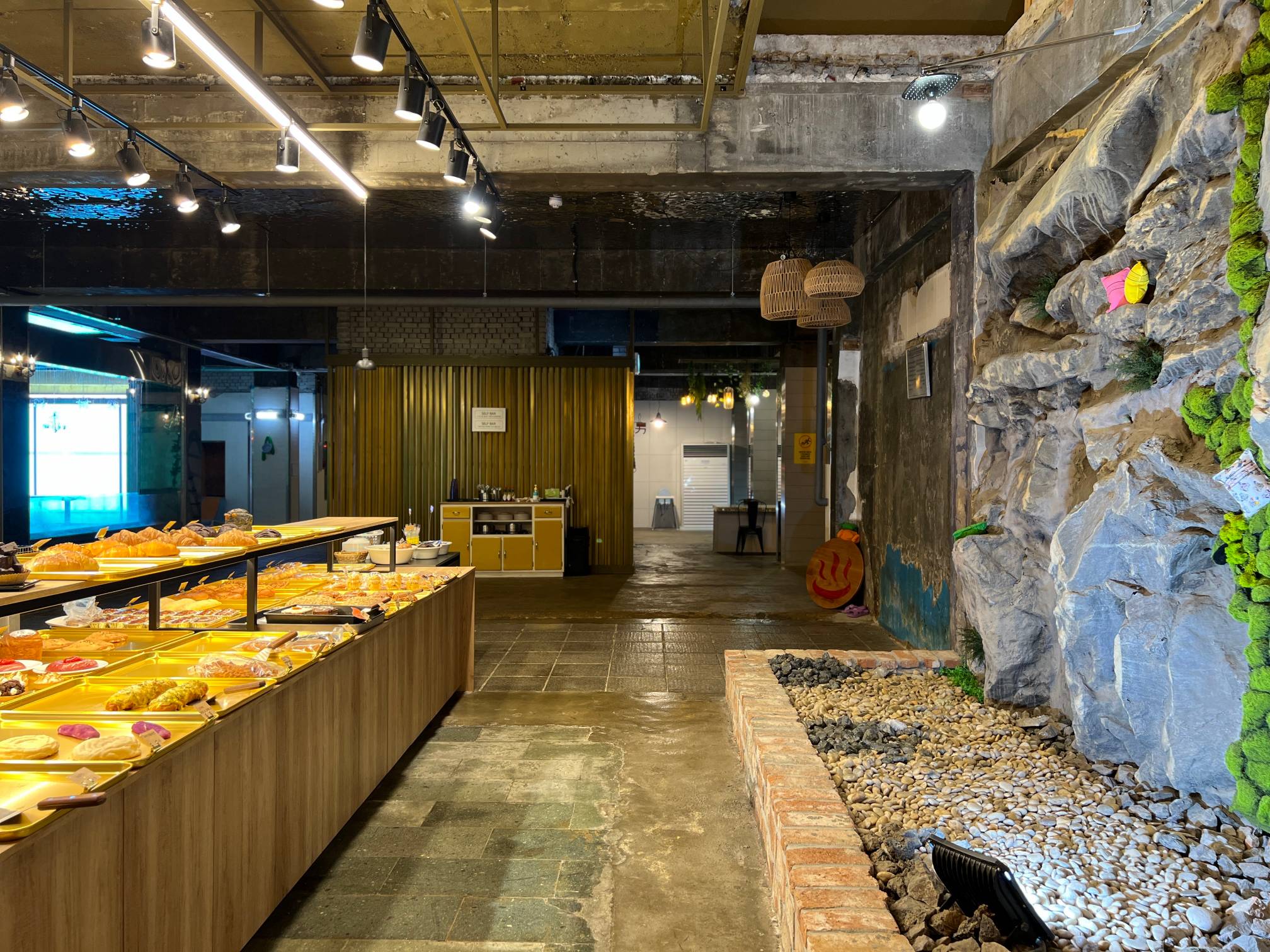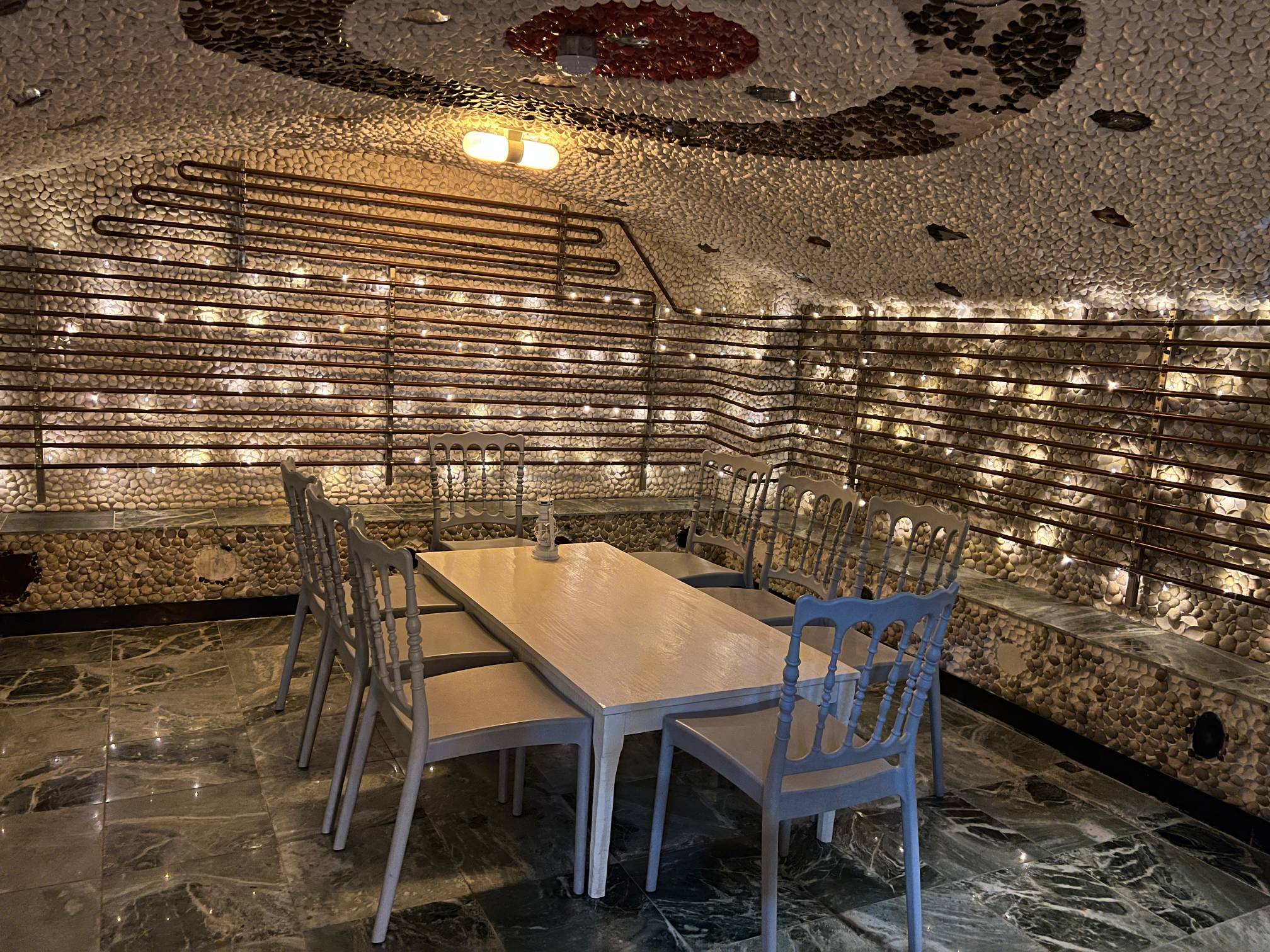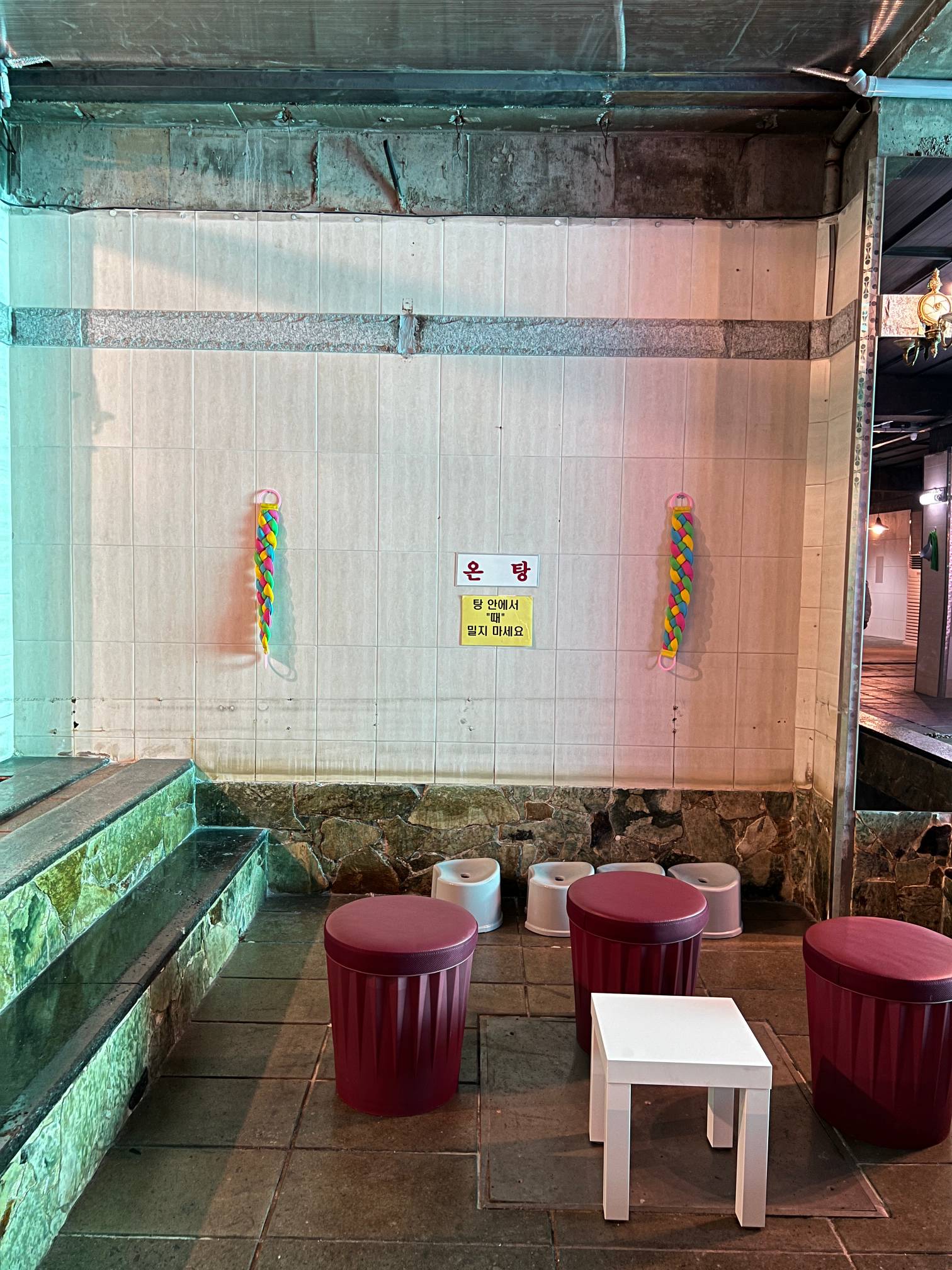 아마도 여기는 과거 사우나로 쓰이던 공간일텐데 이렇게 테이블 자리로 탈바꿈 했다.