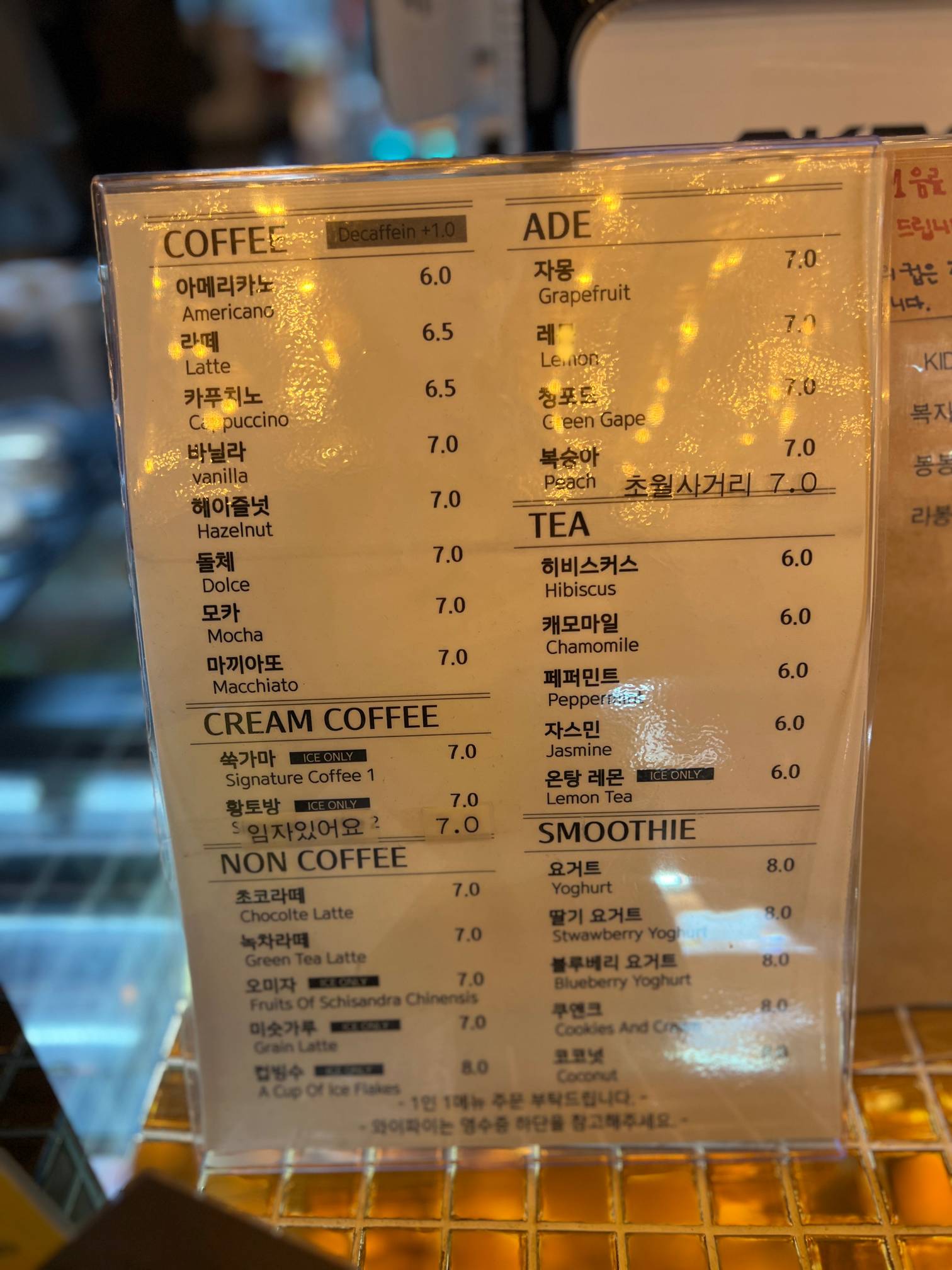 커피 가격은 대략 잔당 6천원 정도라고 보면 된다.