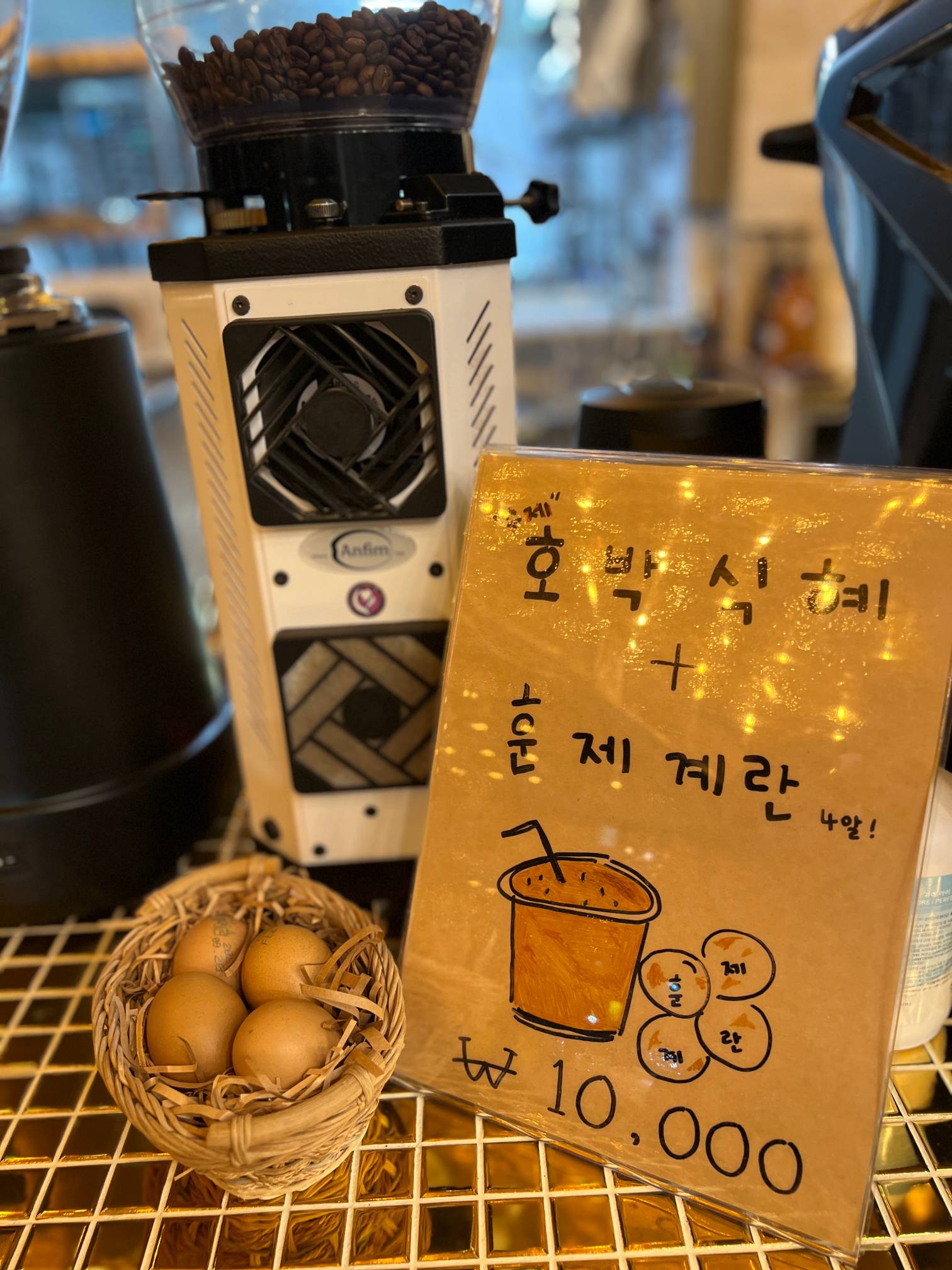 호박 식혜에 훈제계란 4알에 만원이다.