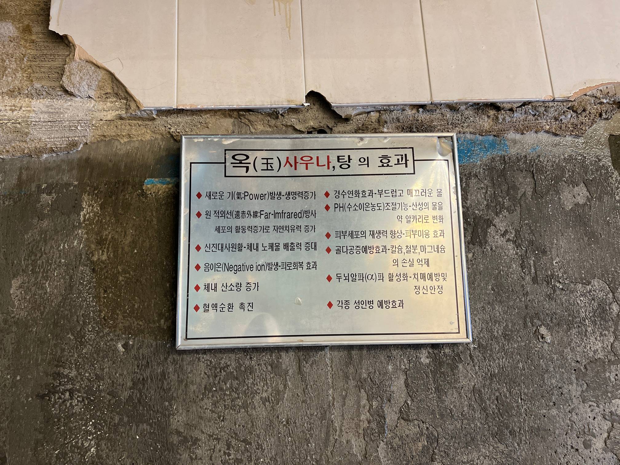 과거 사우탕의 효과를 적어둔 팻말도 그대로 있다.