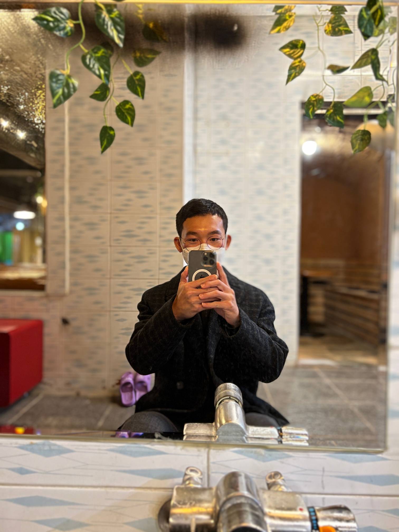 샤워 부스에 앉아서 한 컷.