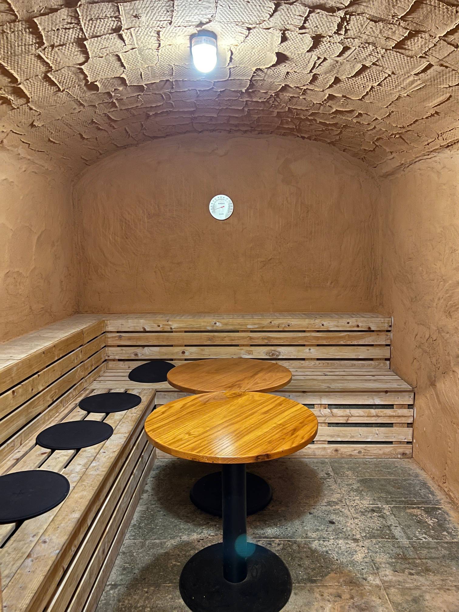 아마도 여기는 과거 사우나로 쓰이던 공간일텐데 이렇게 테이블 자리로 탈바꿈 했다.