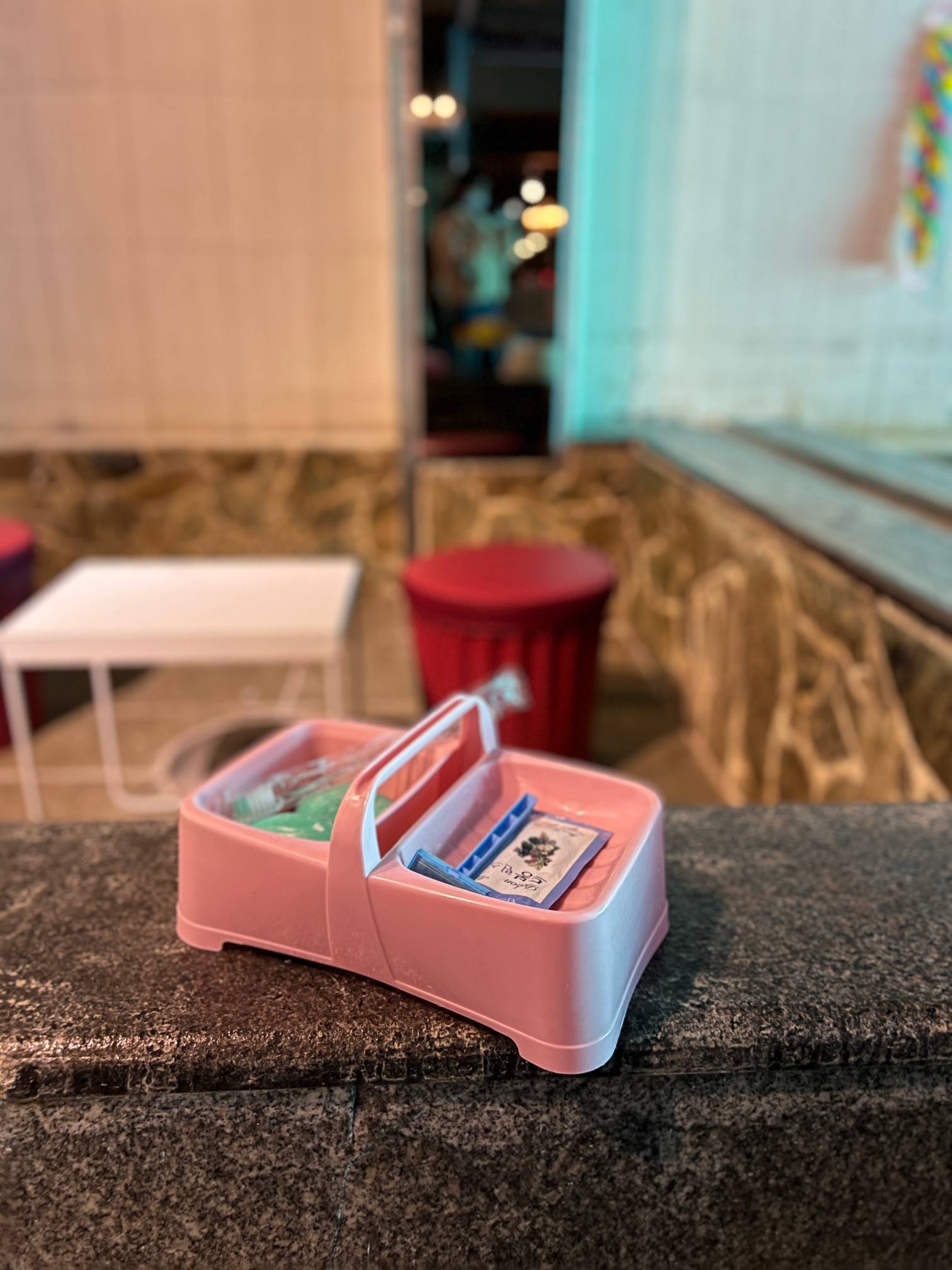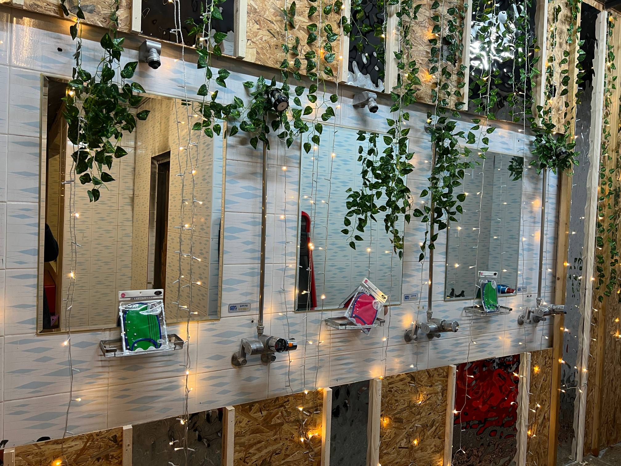 과거 목욕탕에서 쓰던 물건들으르 그대로 활용하는 게 인상적이다.