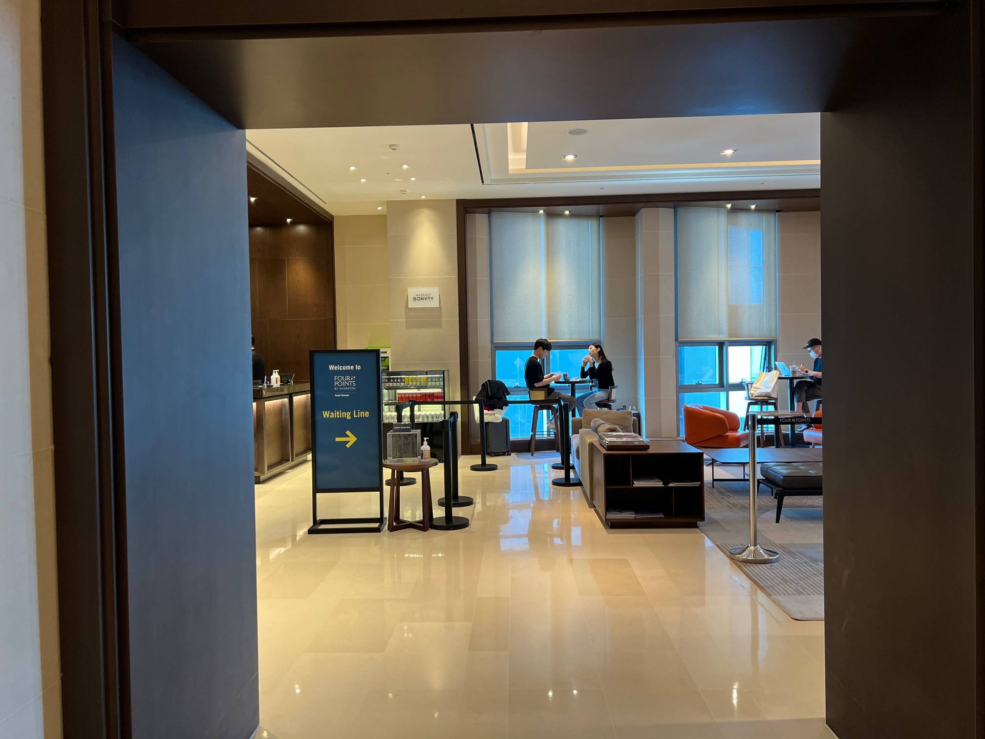 뭐 5성급 호텔들처럼 화려한 카운터는 아니지만 나름 앉아서 시간 보낼 만한 장소도 있고 괜찮은 것 같다.
