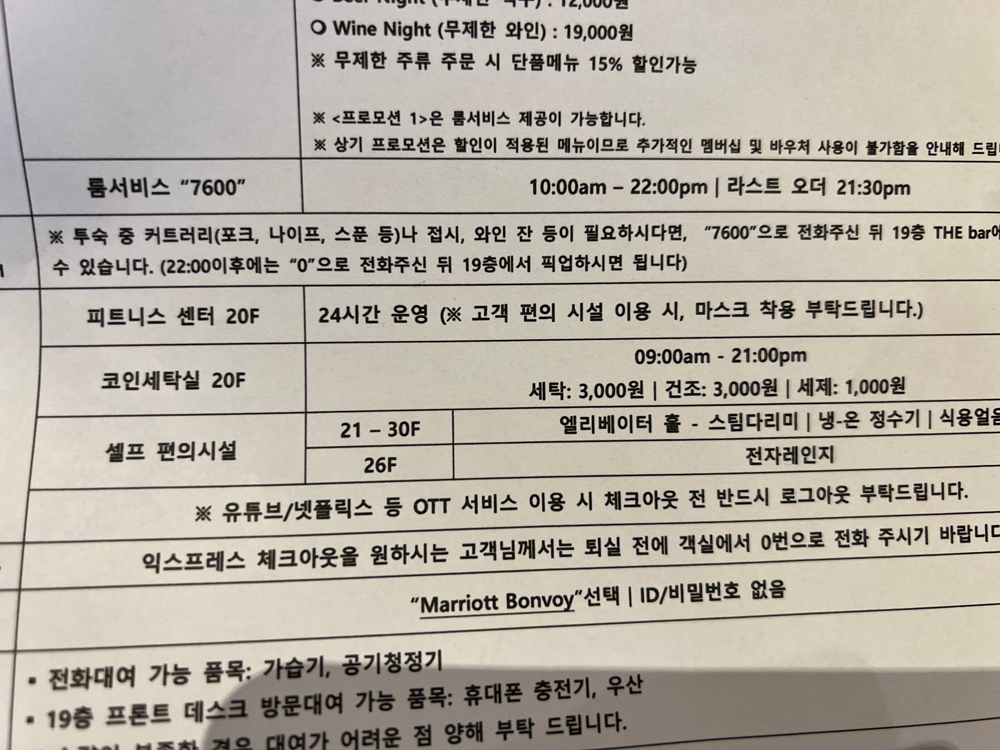 피트니스 센터는 20층에 있고, 코인세탁실도 운영을 하고 있다