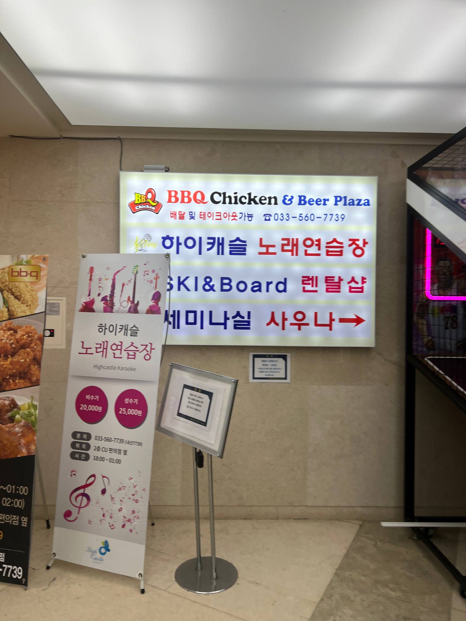 치킨집이랑 노래방이 있고, 스키장이 바로 옆에 있기 때문에 렌탈샵도 운영을 하고 있다.