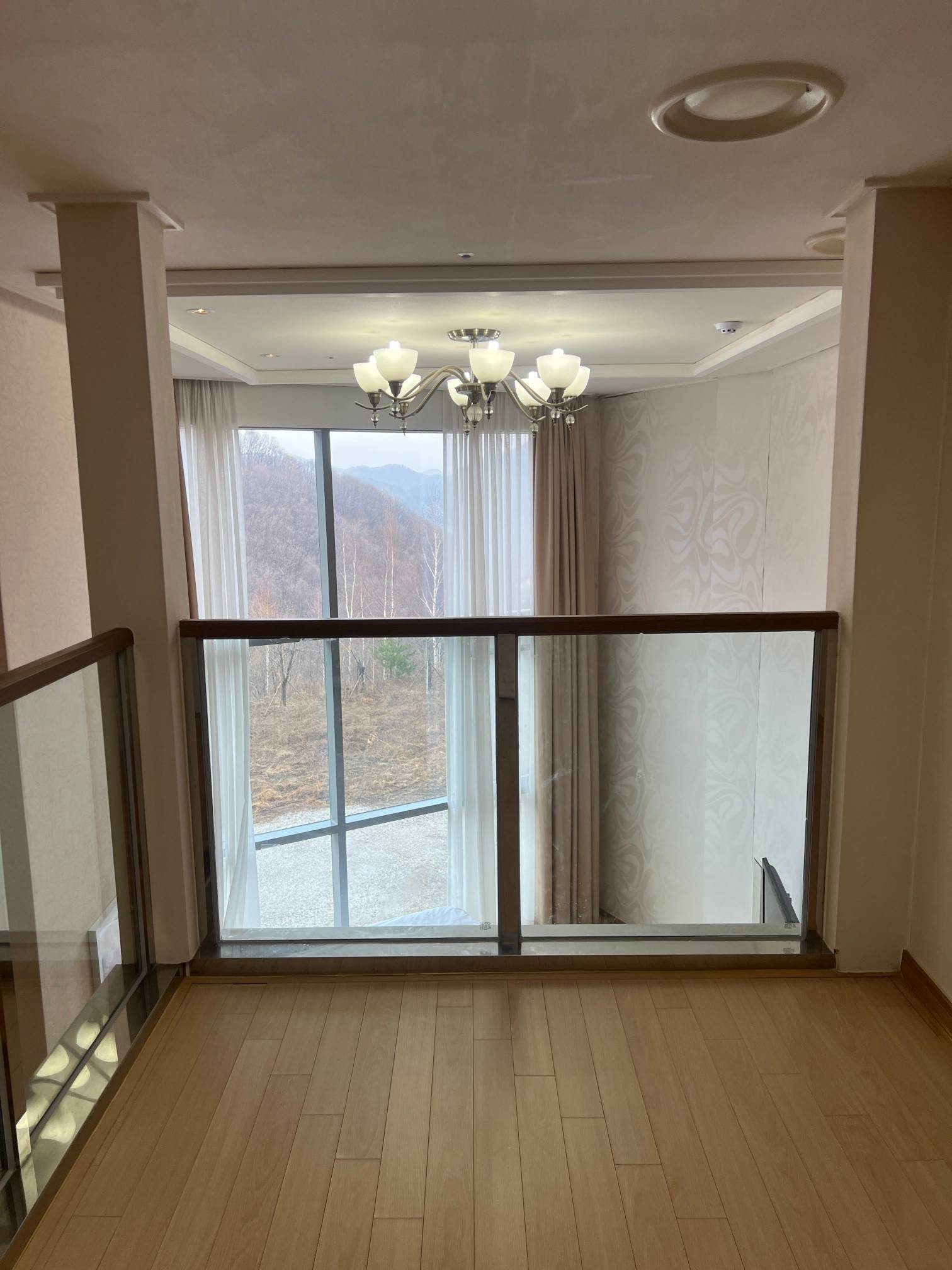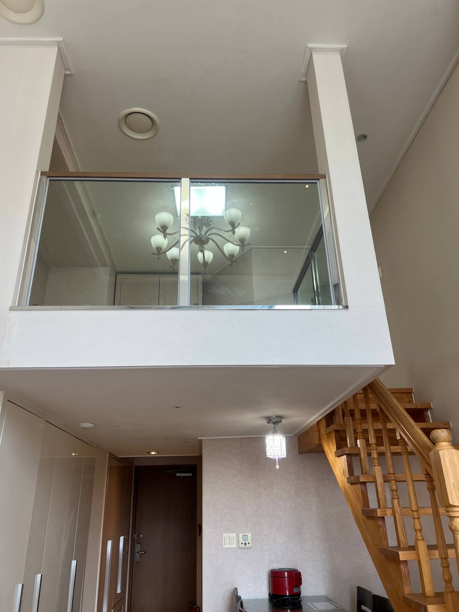 복층에도 유리창이 있어서 아래가 내려다보인다.