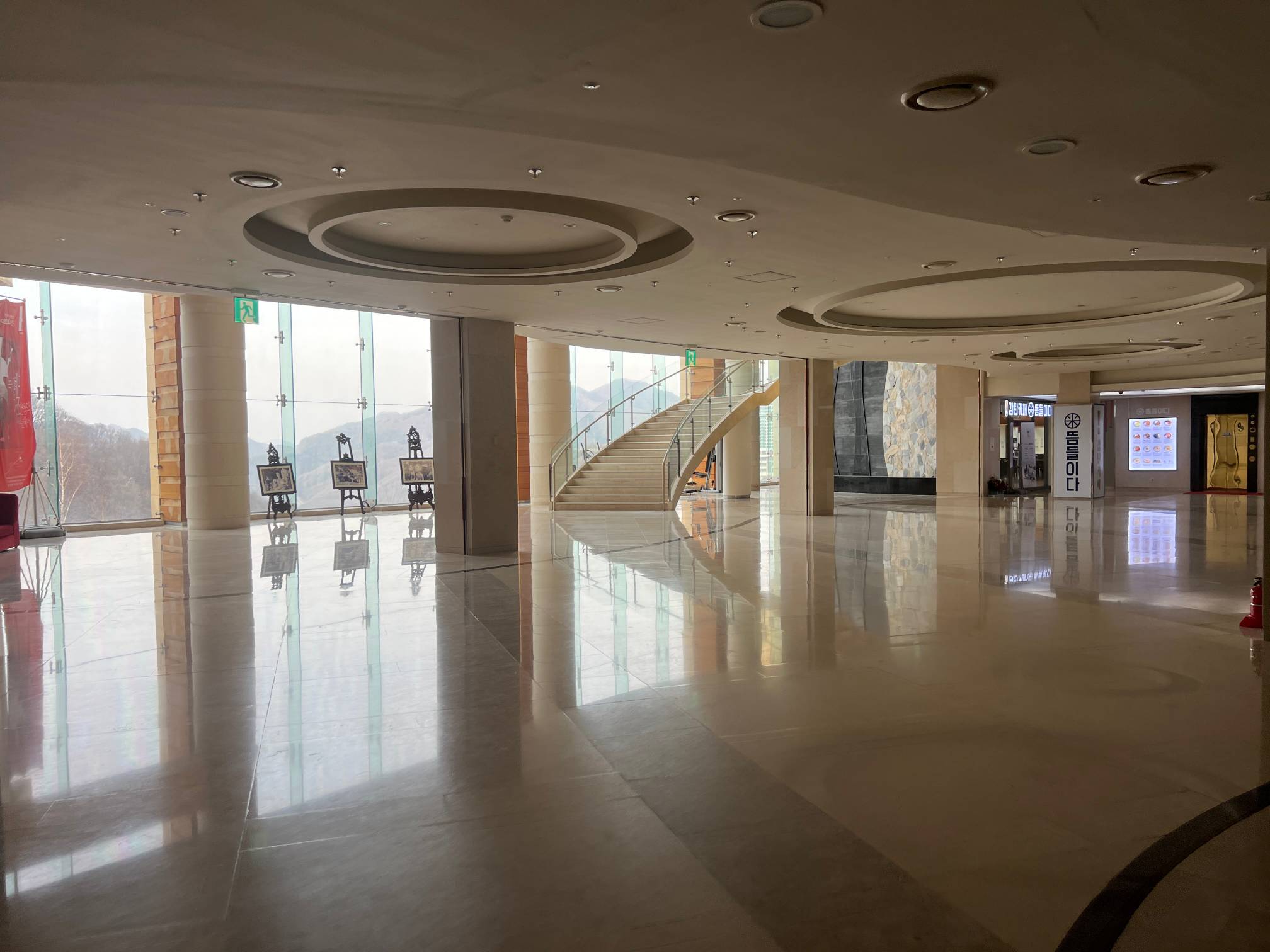로비는 엄청나게 넓고, 층고도 높은데 살짝 휑한 느낌.