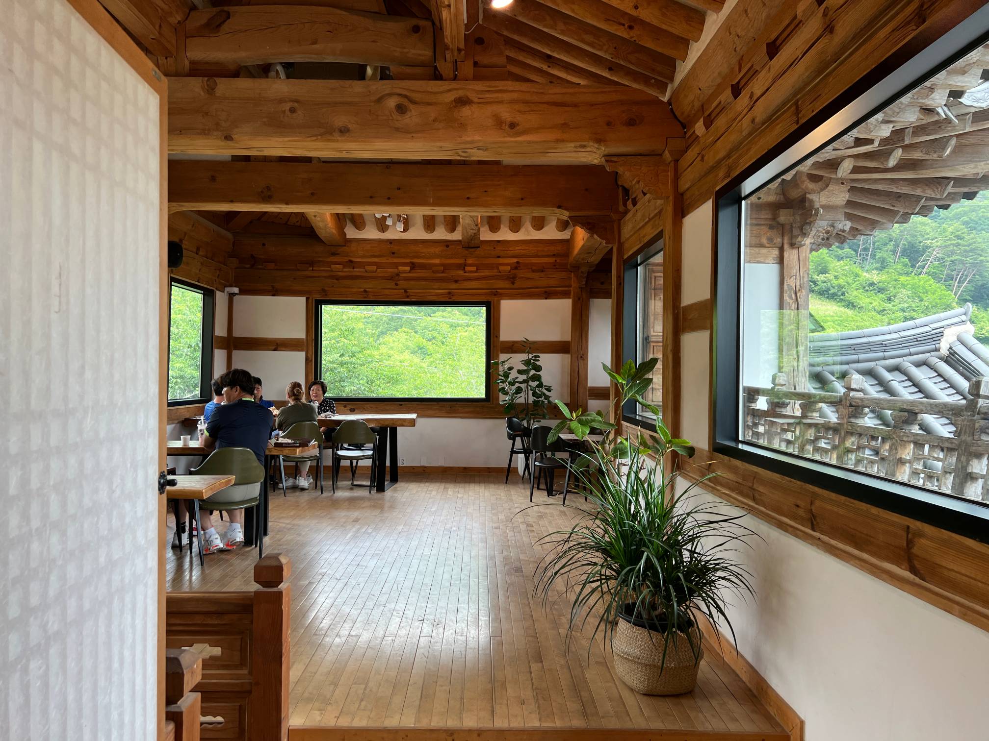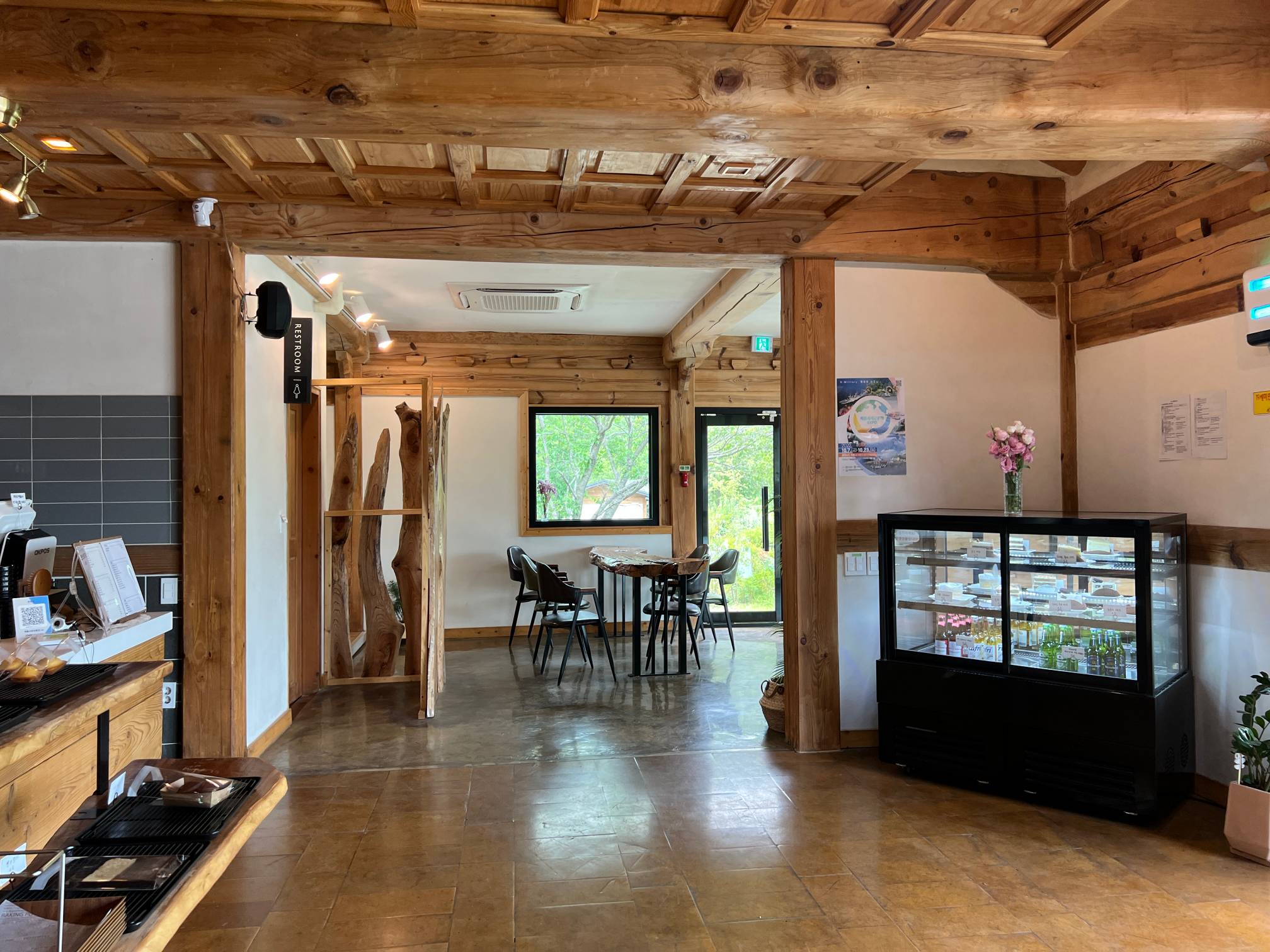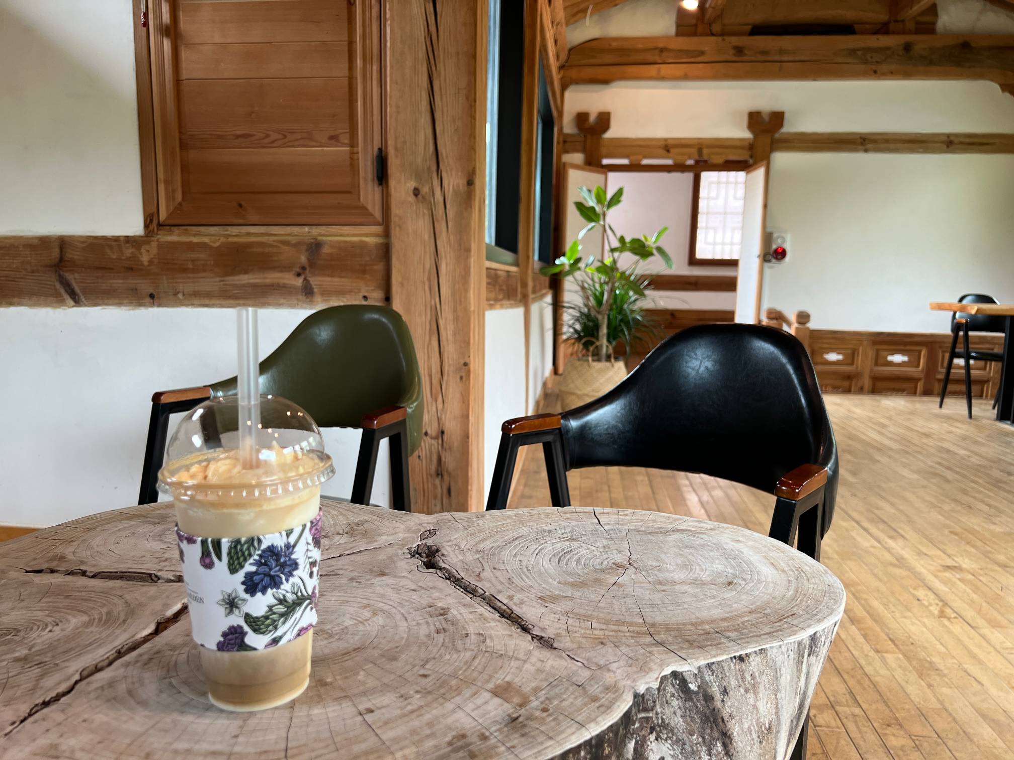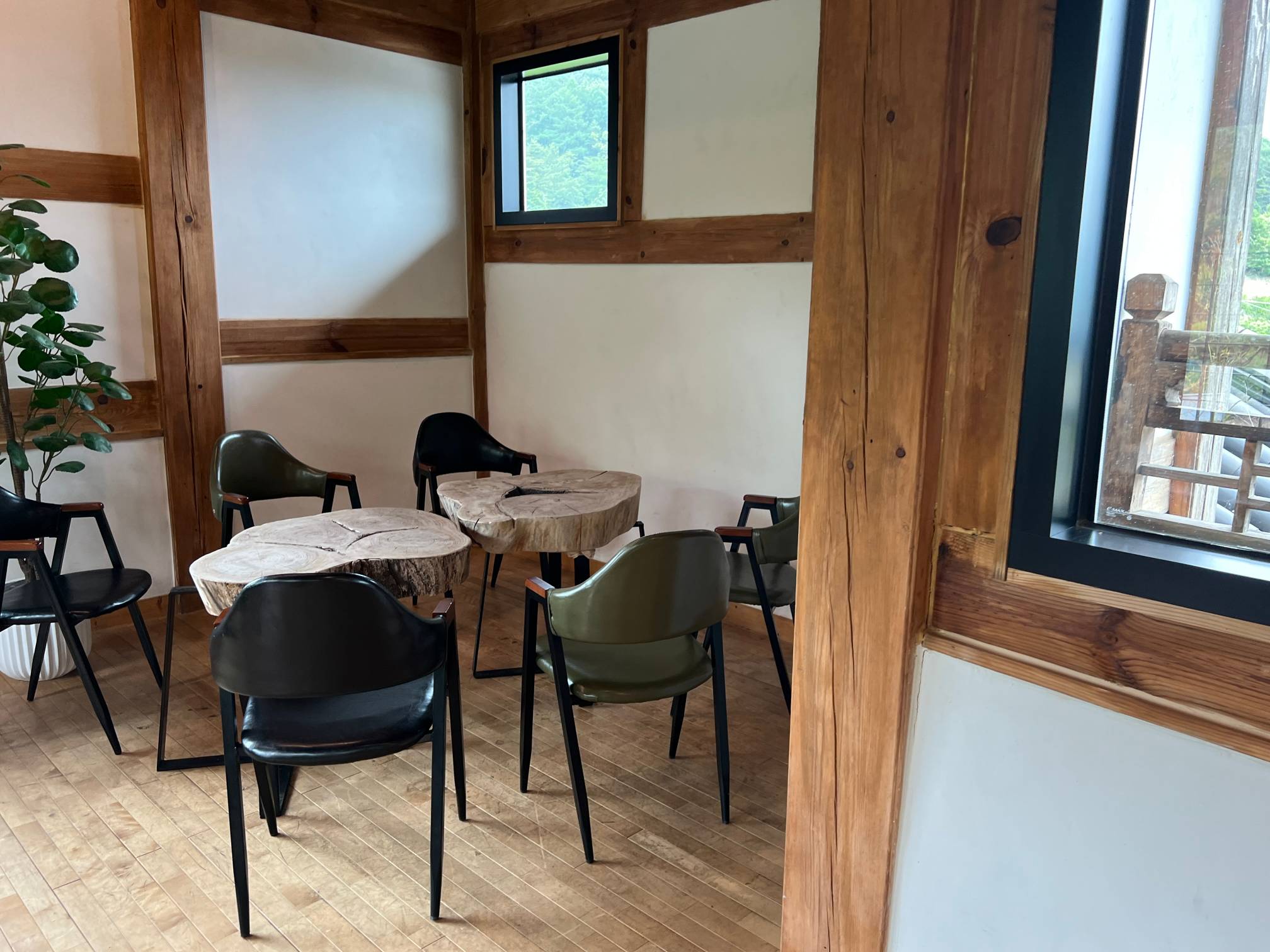 테이블도 저런 식으로 통나무를 자른 형태라서 좀 더 한옥에 잘 어울린다.