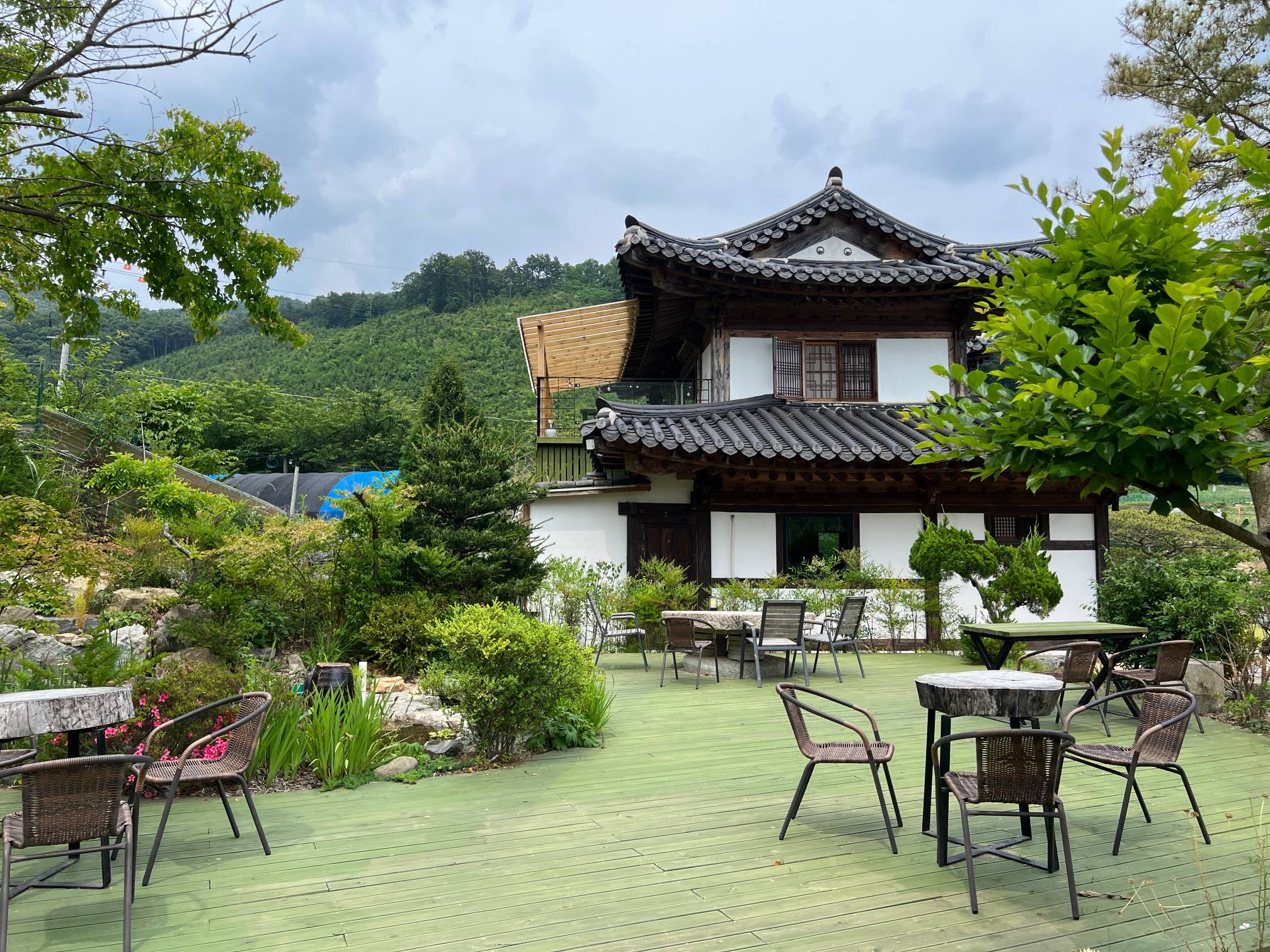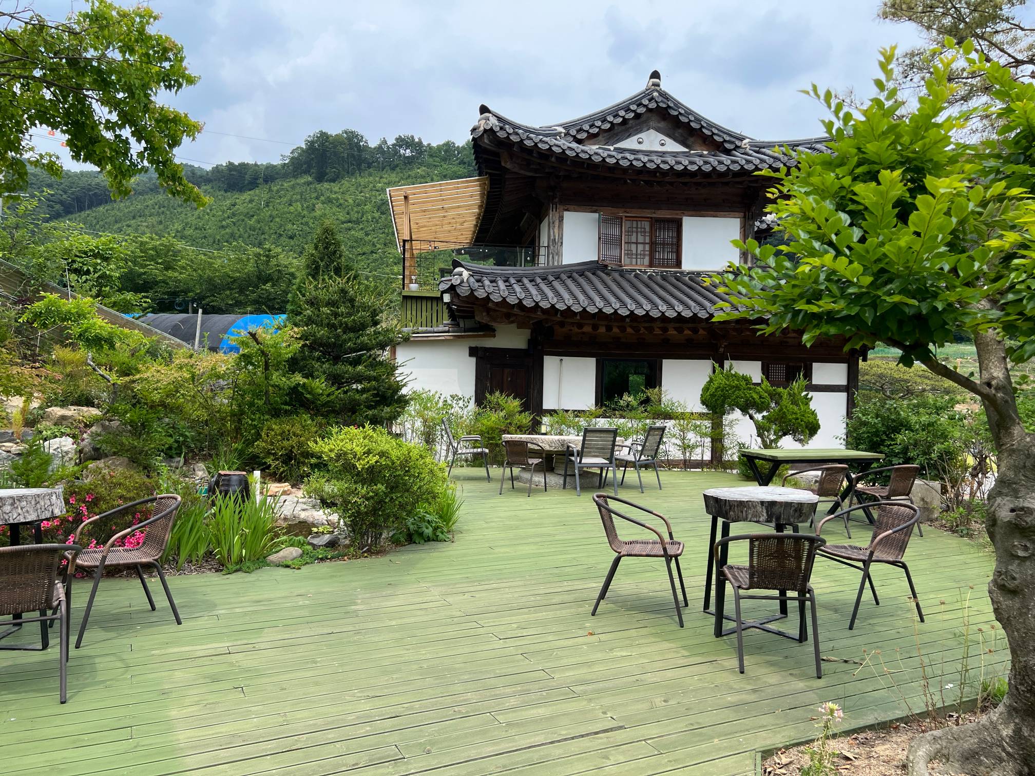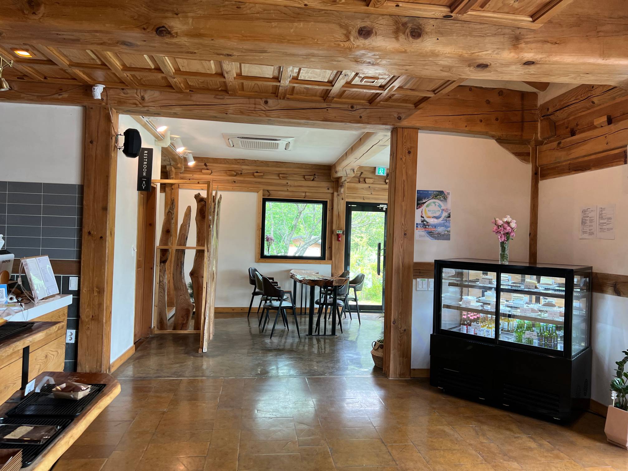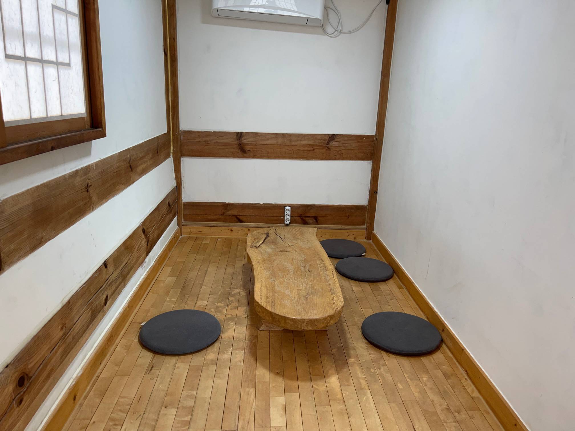 테이블도 저런 식으로 통나무를 자른 형태라서 좀 더 한옥에 잘 어울린다.