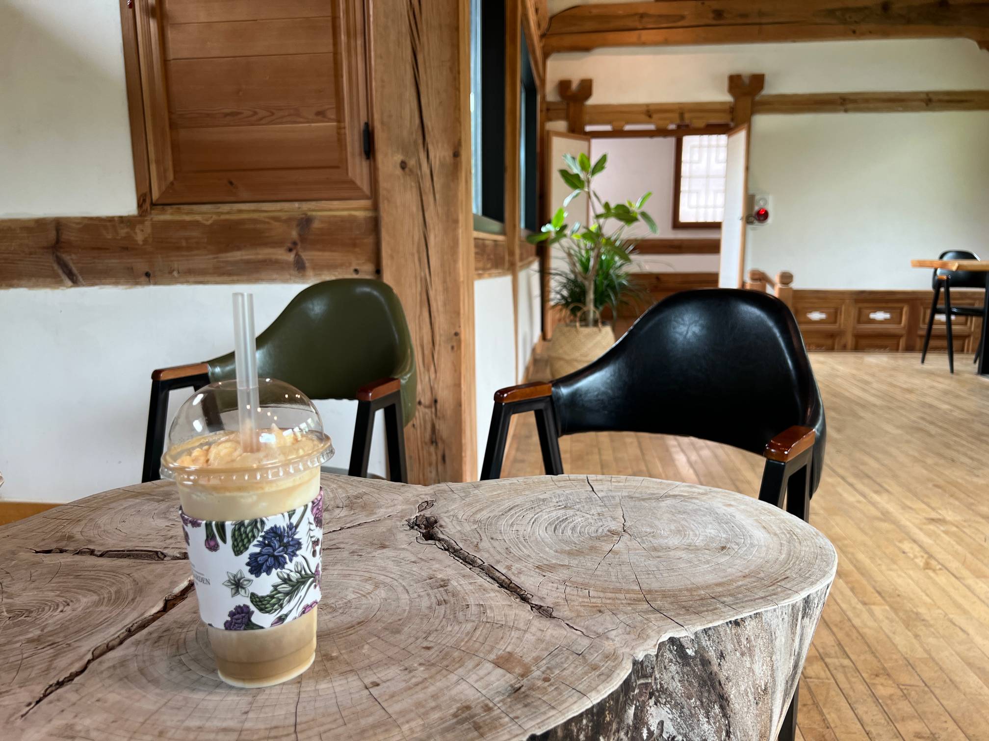 테이블도 저런 식으로 통나무를 자른 형태라서 좀 더 한옥에 잘 어울린다.