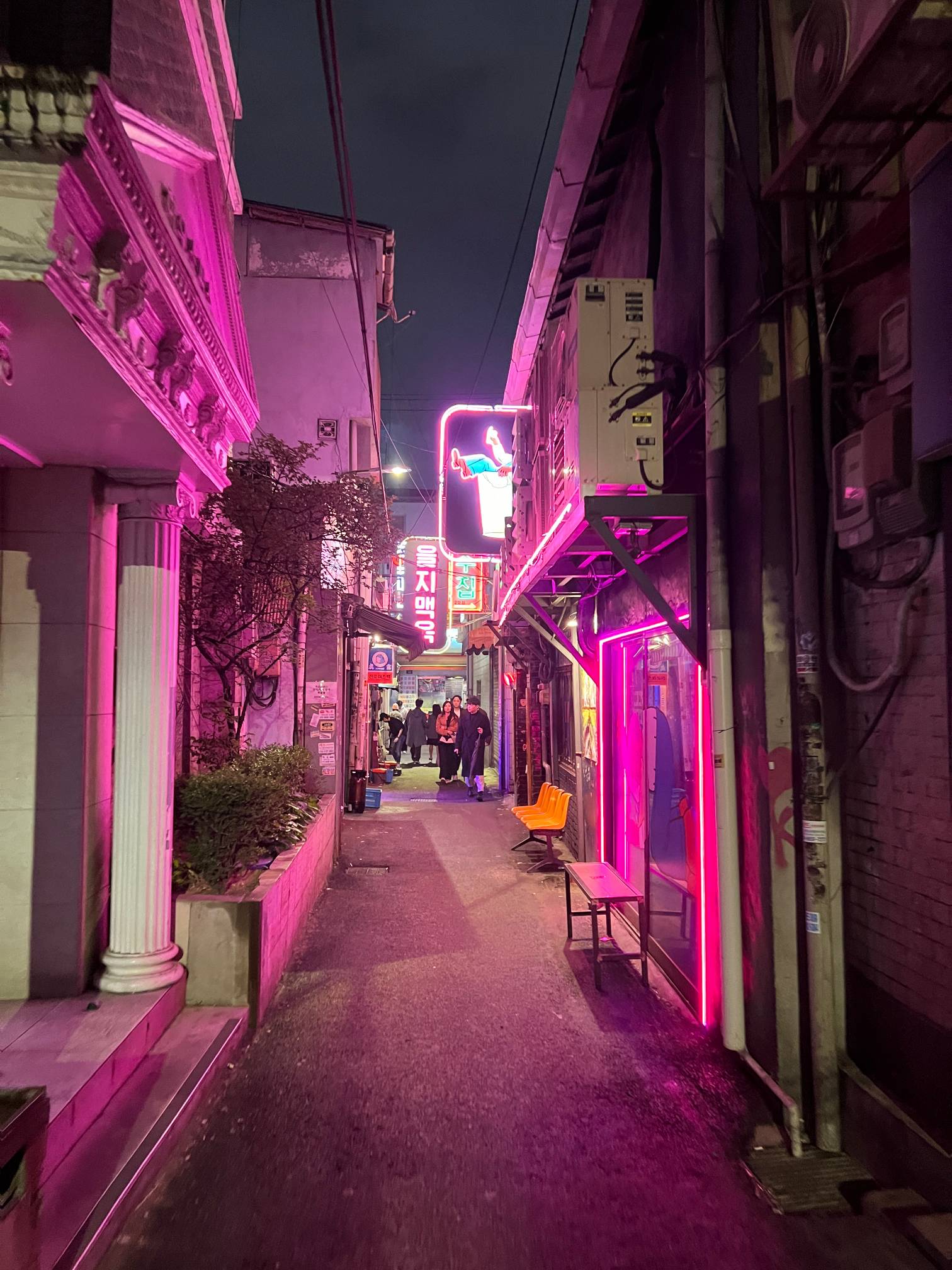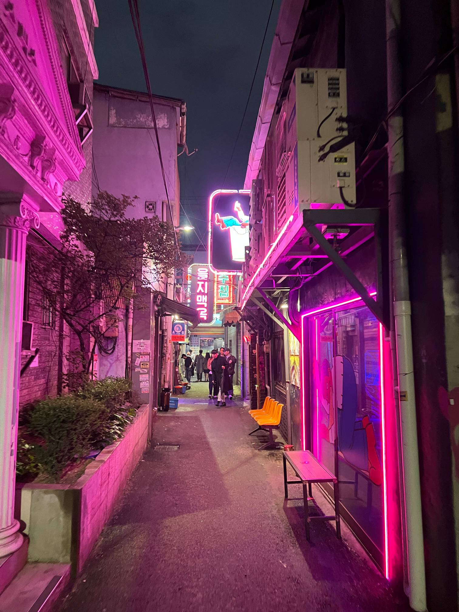 이런 골목 안쪽에 있는데 보라색 불빛으로 꾸며진 게 벌써 힙한 느낌이 난다.