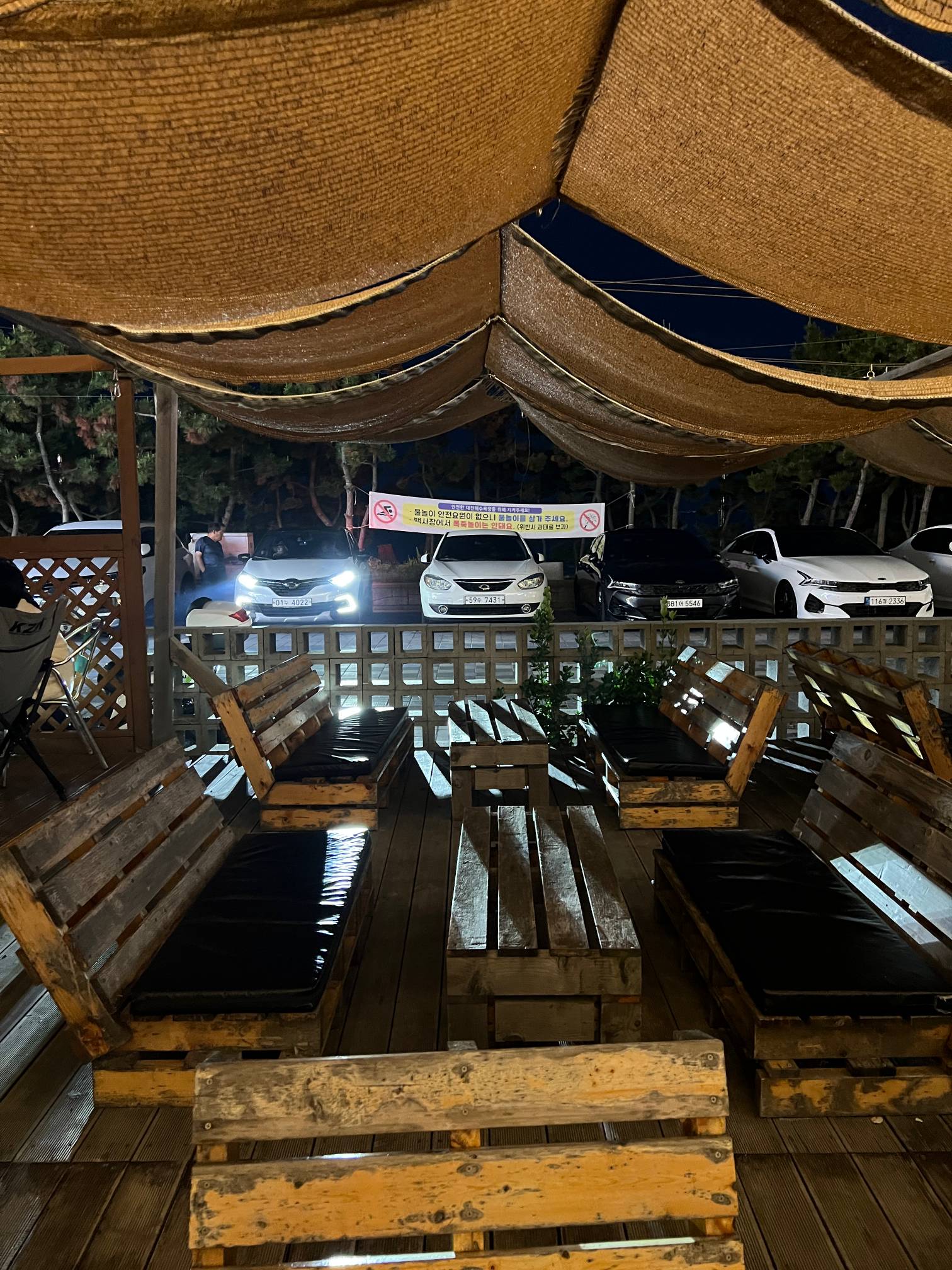 뭐 여름이라 사실 불멍이 크게 감흥은 없는데 저 가운데쪽에는 불멍을 할 수 있는 자리도 있다.