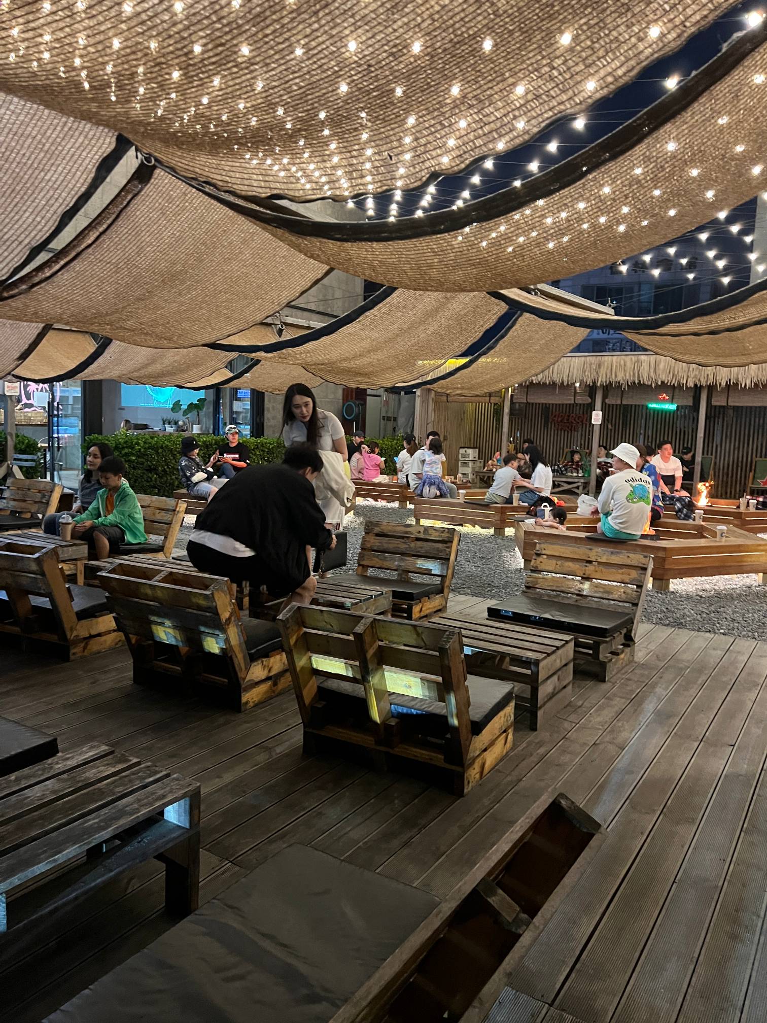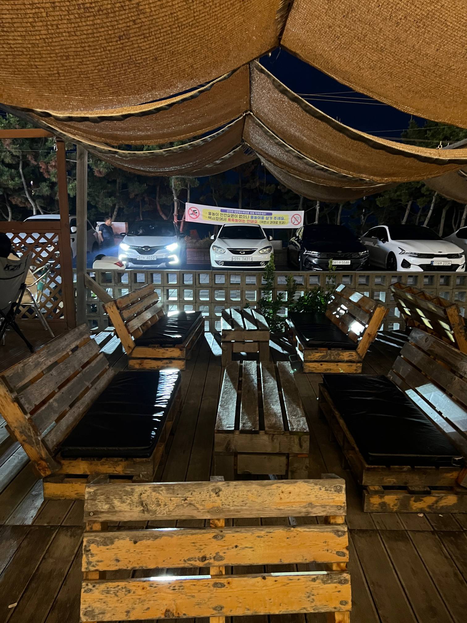 밖으로 나오면 저렇게 캠핑하는 느낌 낼 수 있는 자리도 있고 불멍하는 자리도 있다.