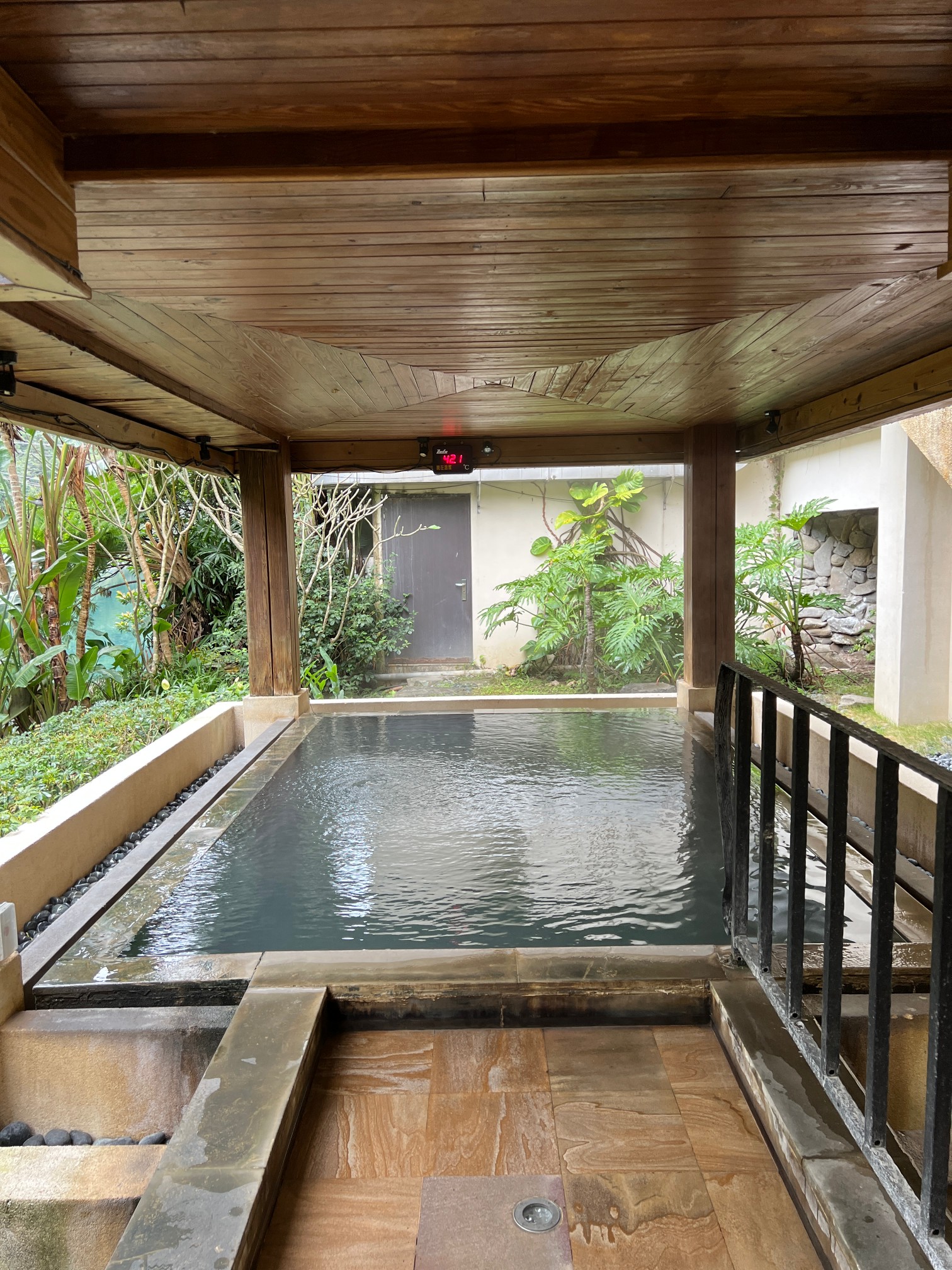 여기서 이렇게 온천하면 진짜 천국이 따로 없다. 바깥으로 보이는 야자수들도 운치를 높여준다.