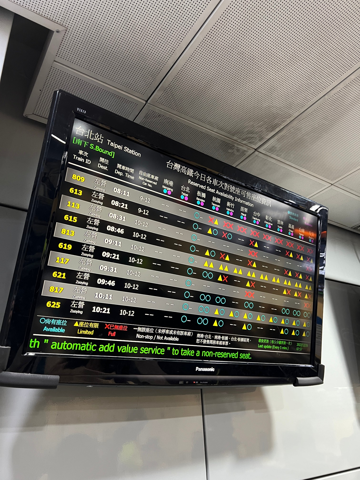 나는 여기서 고속열차를 타고 가오슝의 쭤잉역으로 이동할 예정이다.