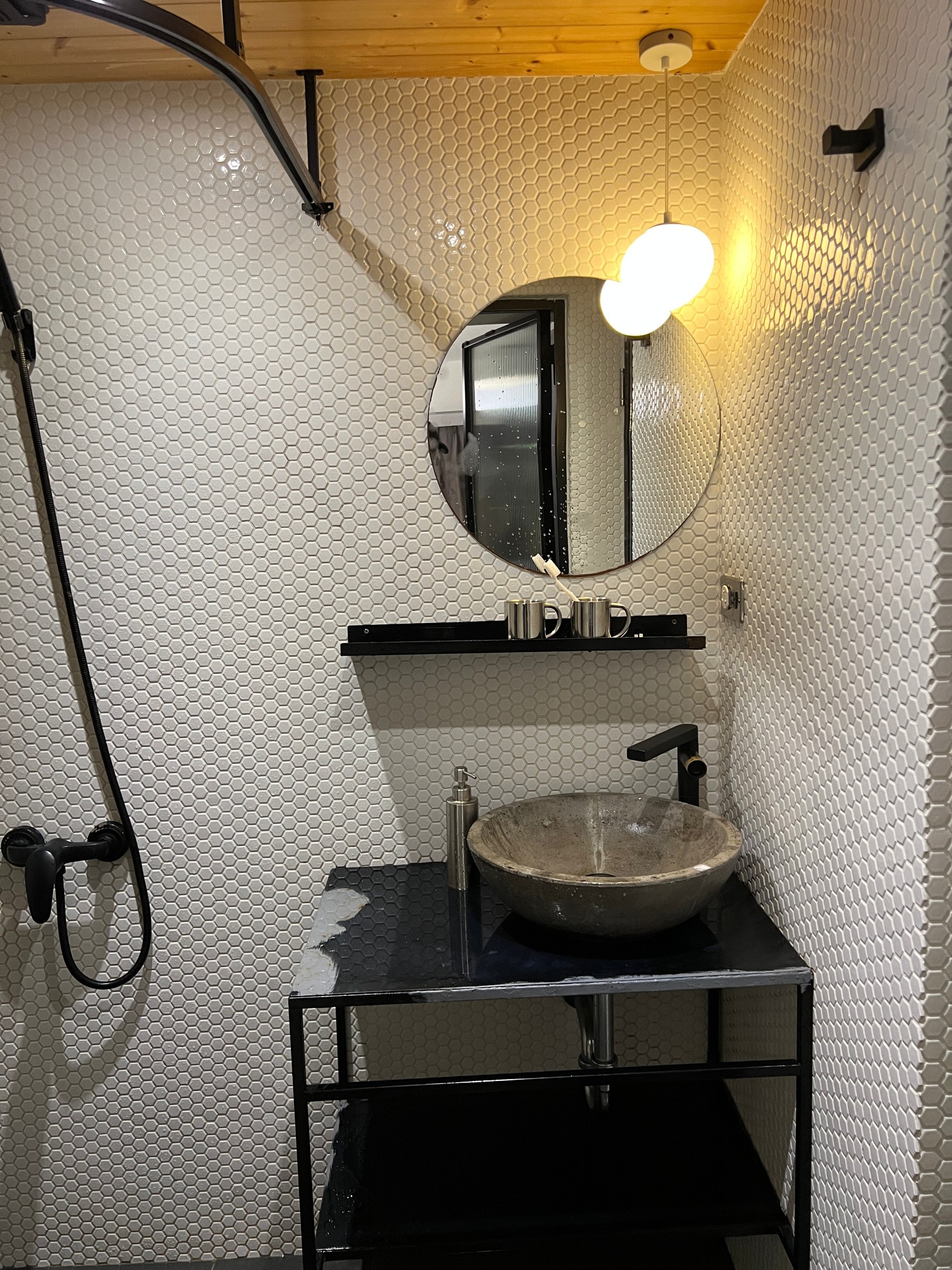 벽에는 작은 티비가 있지만 뭐 볼 일은 딱히 없다.