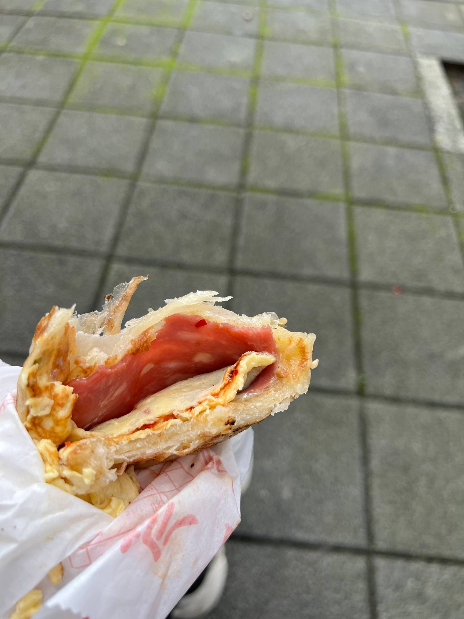 여기 융캉제거리 한복판에 가면 #총좌빙 이라는 대만 길거리음식 파는 길거리 음식점이 있는데, 융캉제거리에서 그 망고빙수 파는 가게 바로 앞에 있는 데라서 무조건 볼 수밖에 없는 곳이다. 두번이나 대만에 오면서한번도 못 먹었었는데 드디어 먹어봄!! 역시 대만에 관광객이 적은 편이라 별로 기다리지 않고 먹을 수 있었다. 계란 부침개? 같은 맛인데 따뜻할 때 먹으면 생각보다 맛은 괜찮았다. 안에 치즈, 햄 뭐 이런 재료를 여러가지로 선택할 수 있는데 이거저거 많이 넣는 게 맛있는 듯.