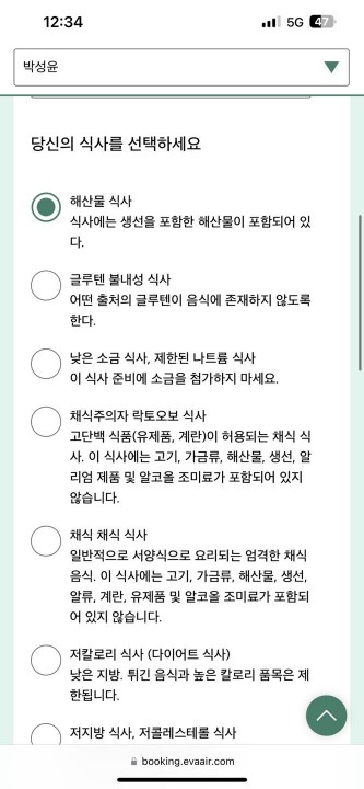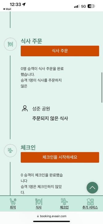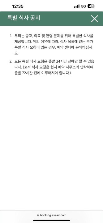 참고로 특별 기내식 주문하는 걸 혹시 궁금해하시는 분들이 있을 것 같아서 화면을 캡처했다.