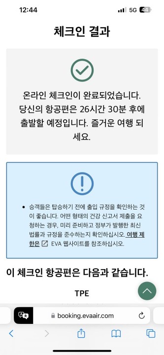 내가 타고 갈 에바항공.