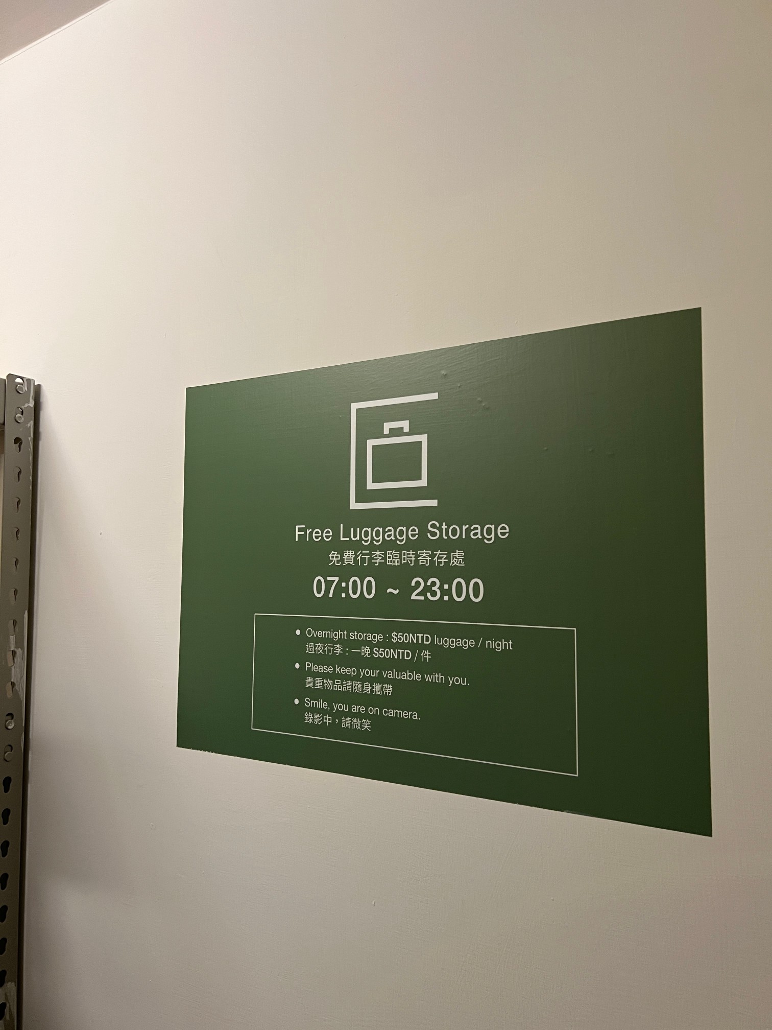 암튼 체크아웃 하기 전이나 후에도 이렇게 짐을 맡아주니까 타이페이 메인역에 도착해서 짐을 맡겨놓고 일정을 시작해도 괜찮다.