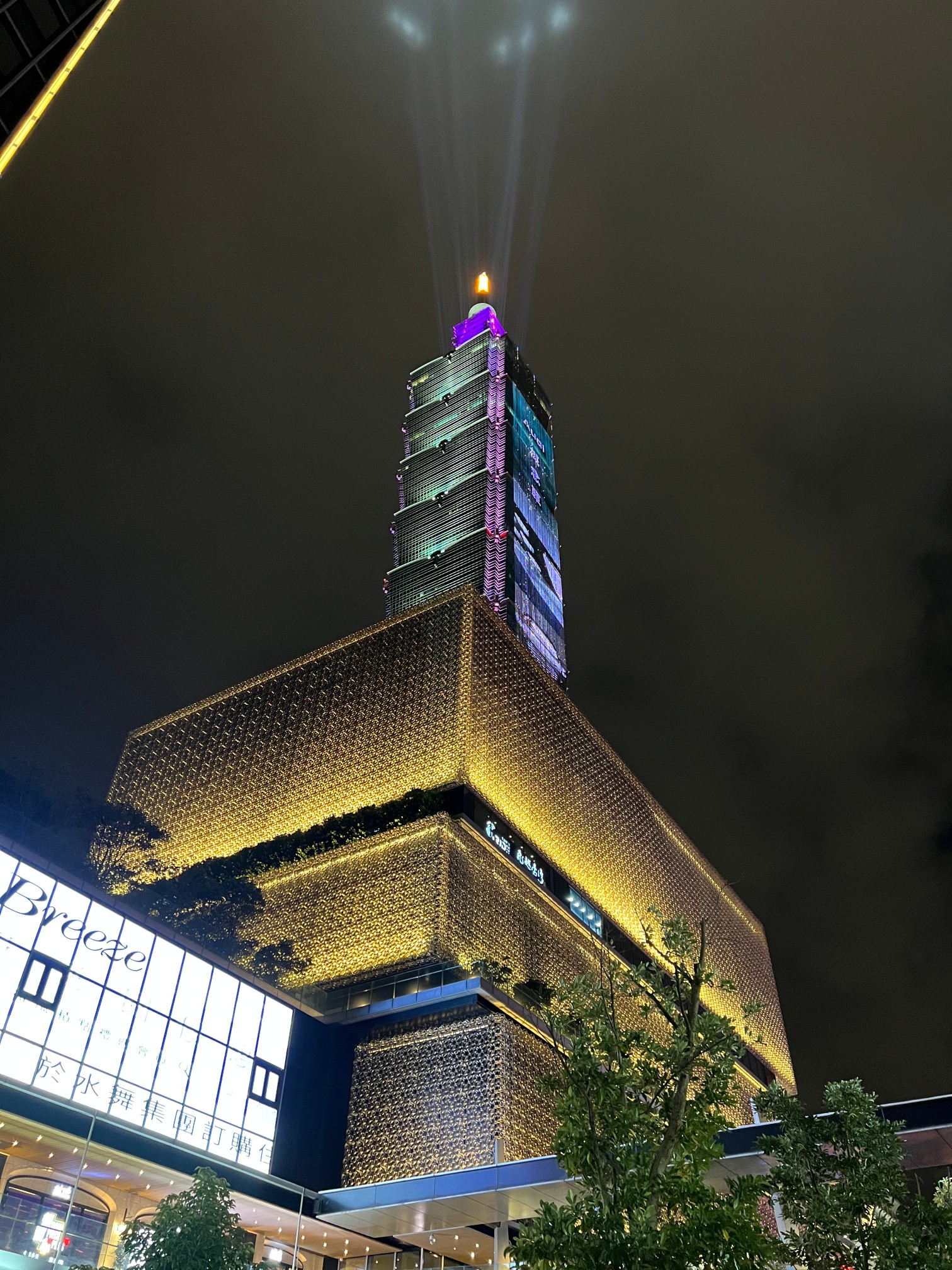 불빛읇 밝히고 있는 타이페이 101 빌딩.