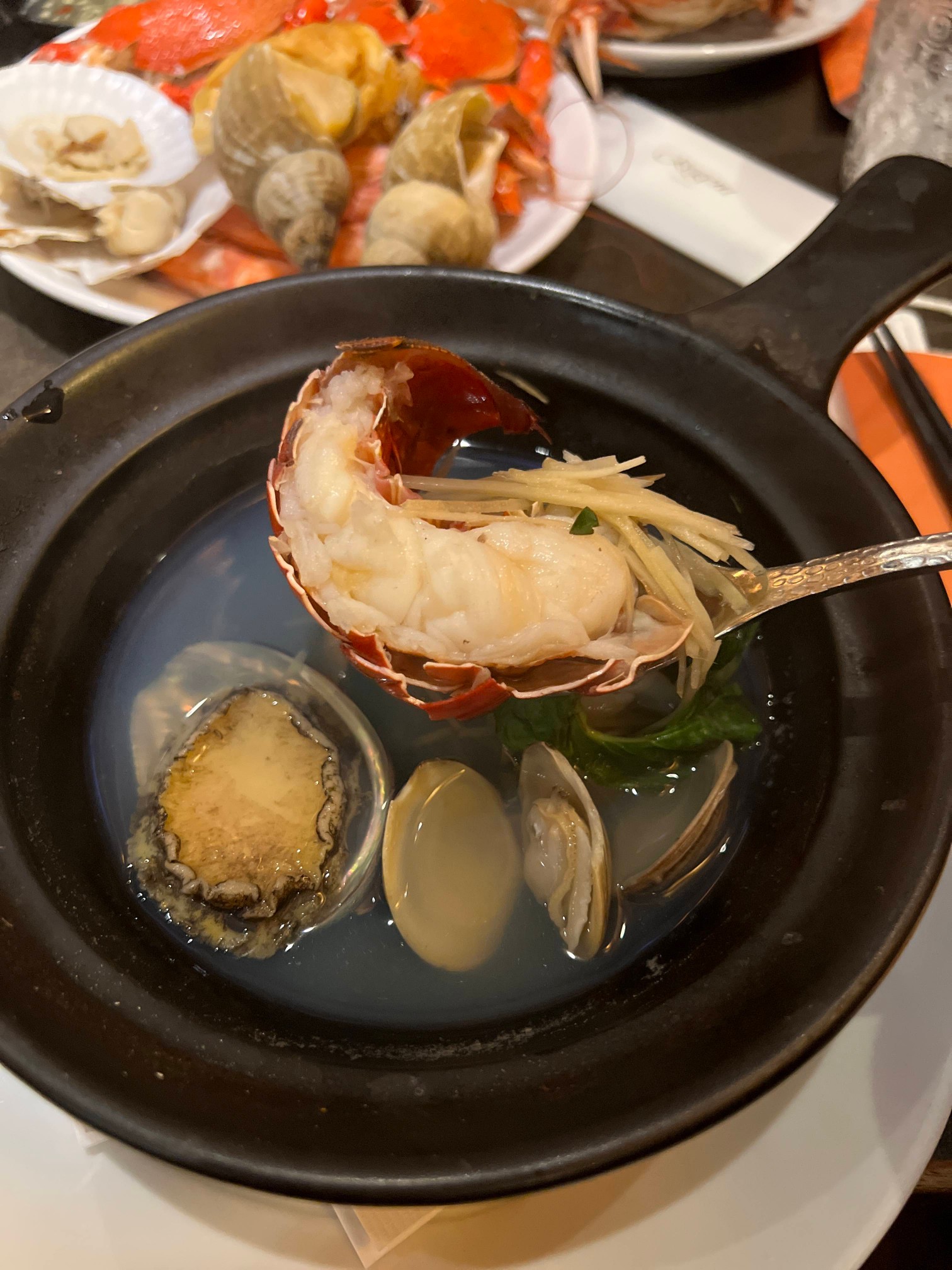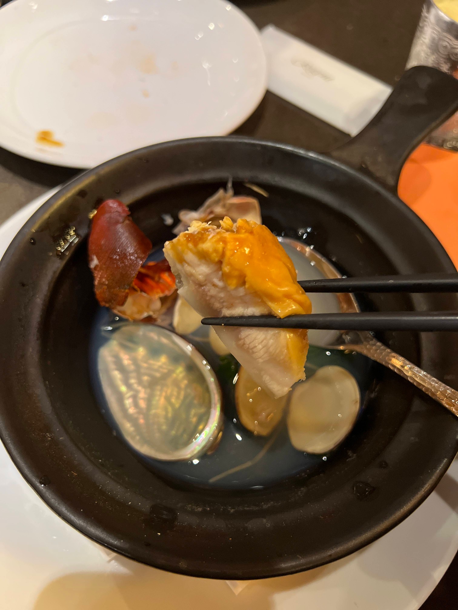랍스터와 전복이 들어간 엄청난 똠양꿍이다.