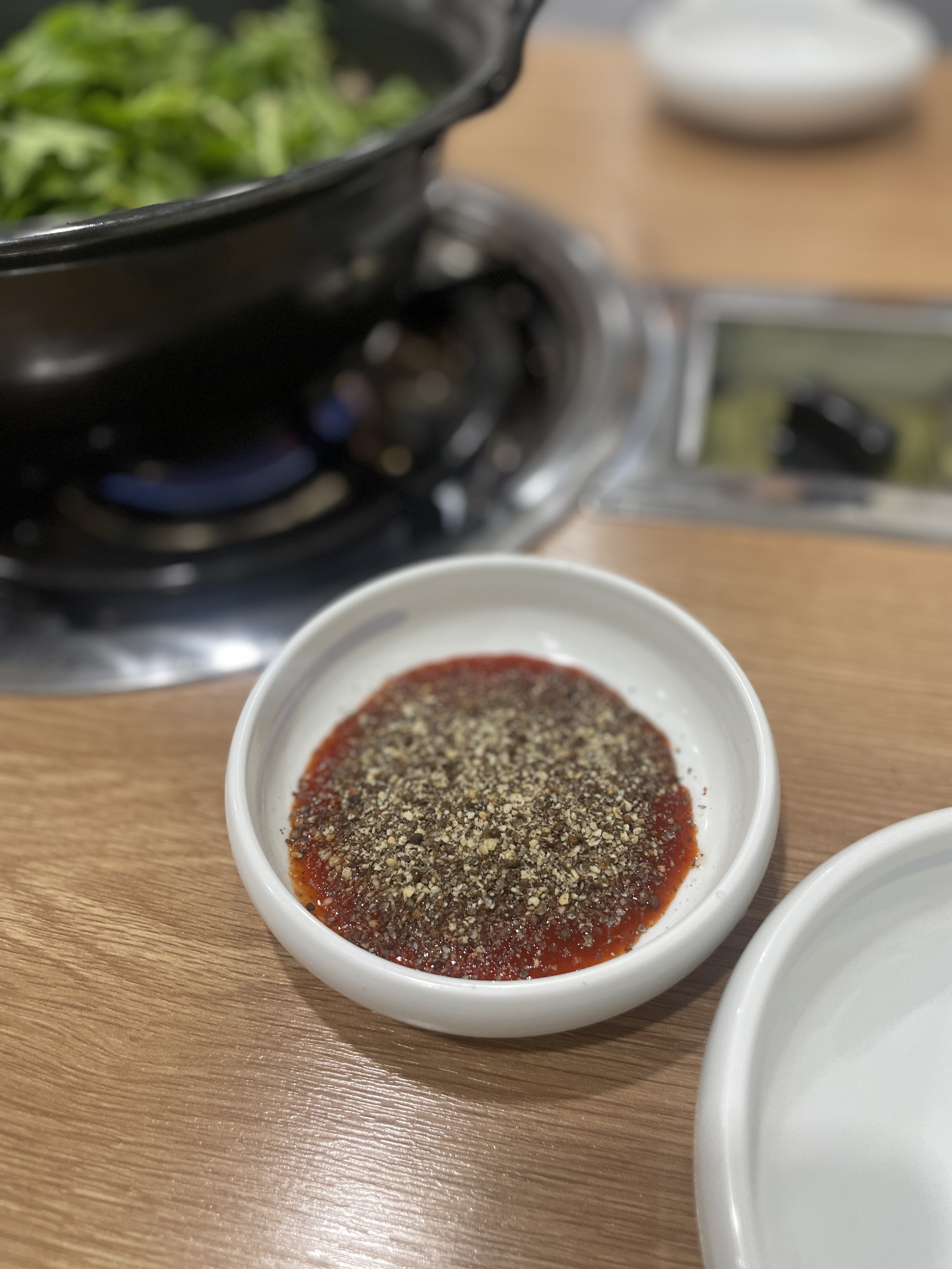 샤부샤부를 찍어 먹는 소스는 빨간소스 와 들깨가루 넣어서 만드는 거였는데 소스가 정말 맛있었다