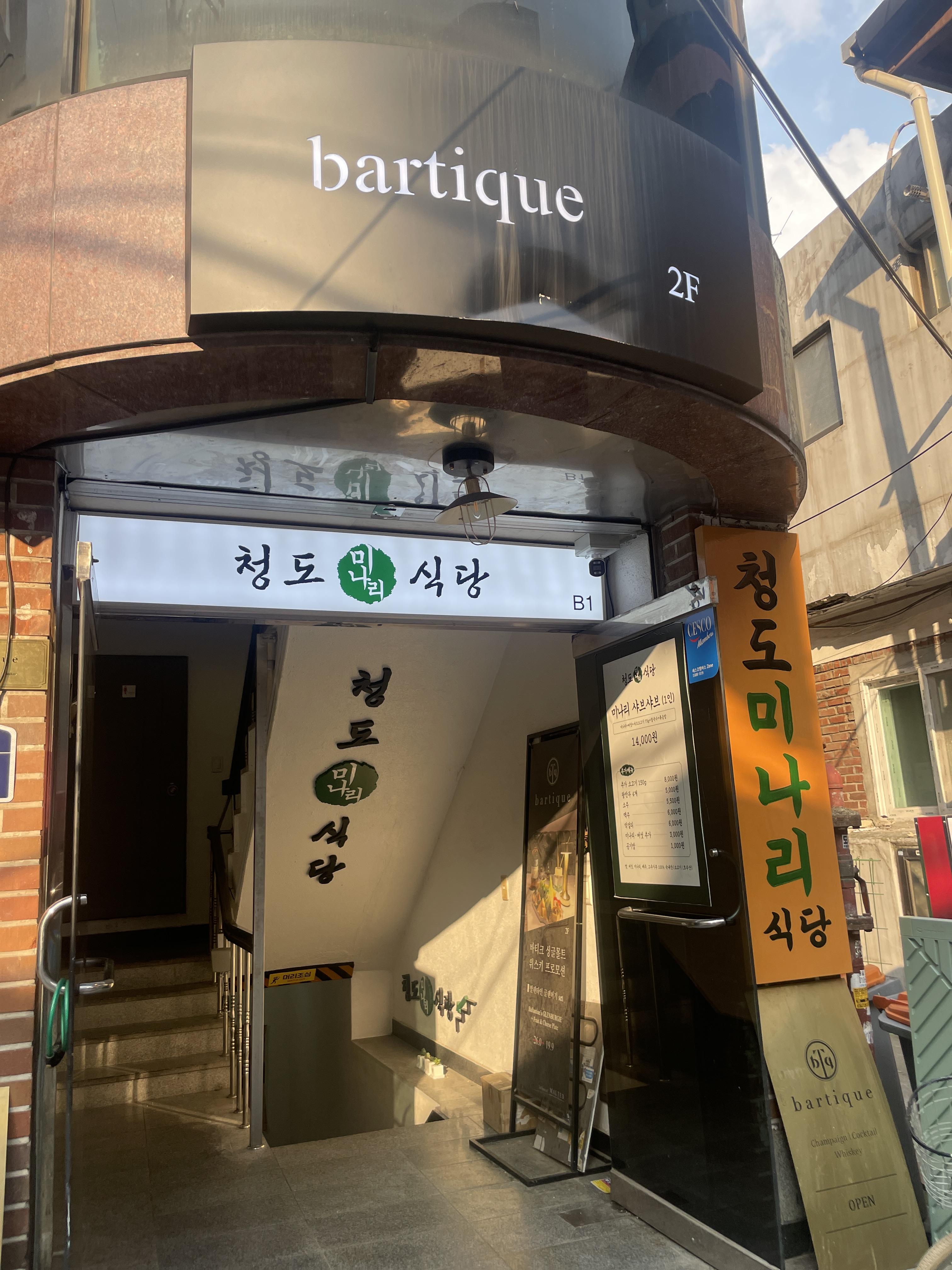 입구에 모습인데 청도 미나리 식당은 지하 1층에 위치하고 있다