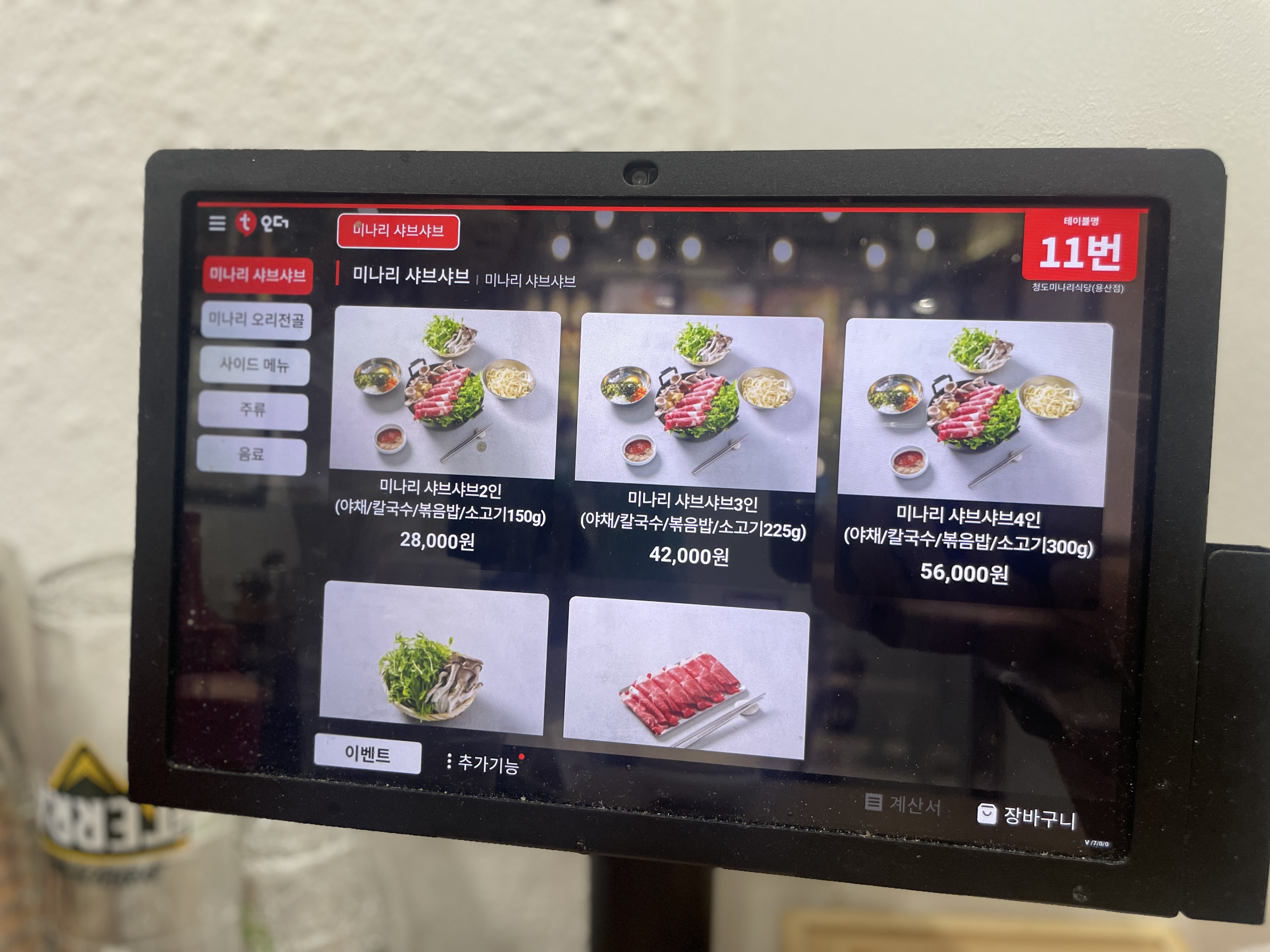 테이블마다 태블릿이 있어서 태블릿을 이용해
