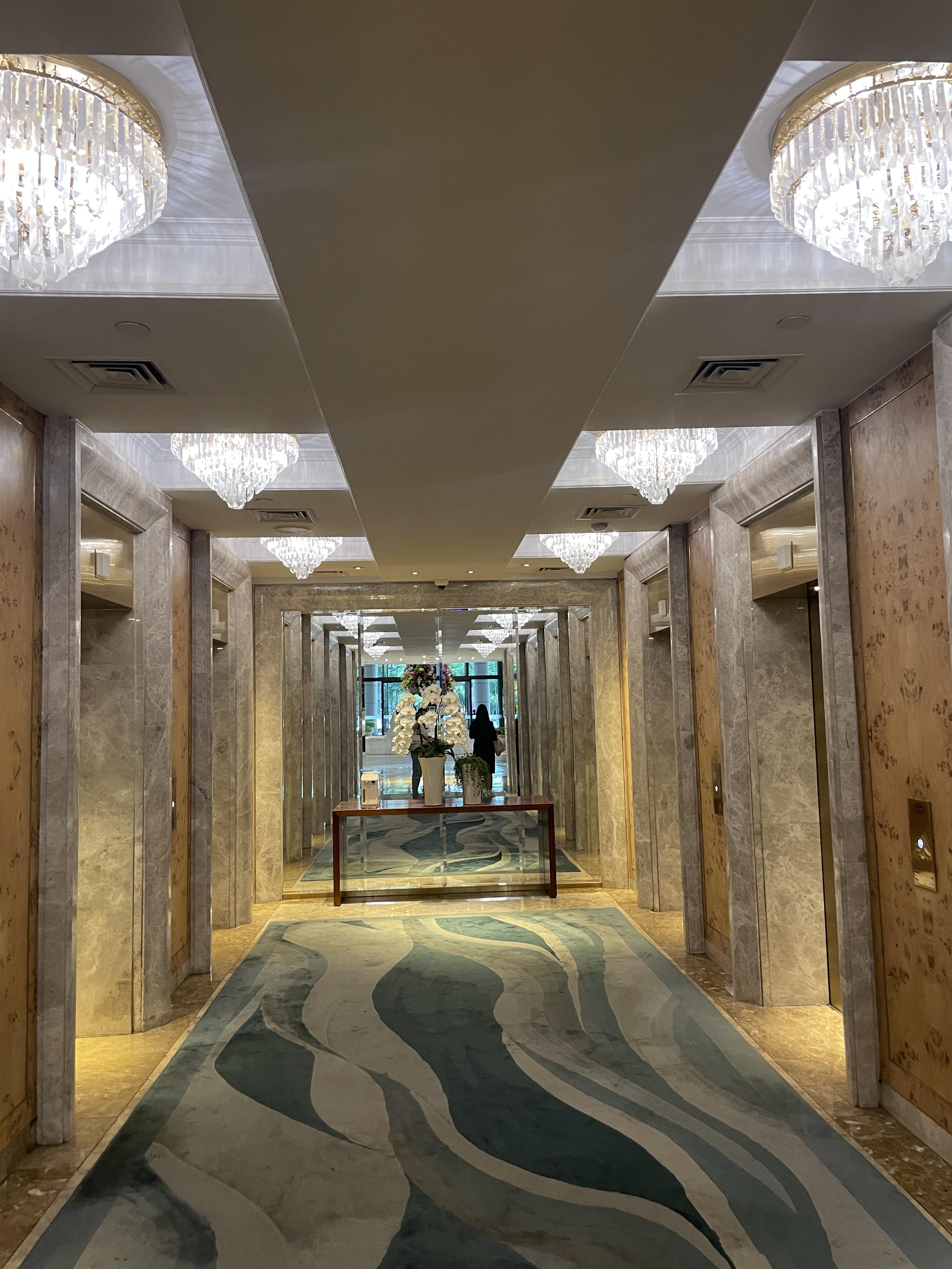 이제 객실로 올라가기 위해 엘리베이터를 타러 왔어요